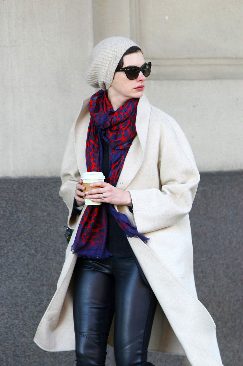 Anne Hathaway picks up a coffee in the SoHo neighborhood