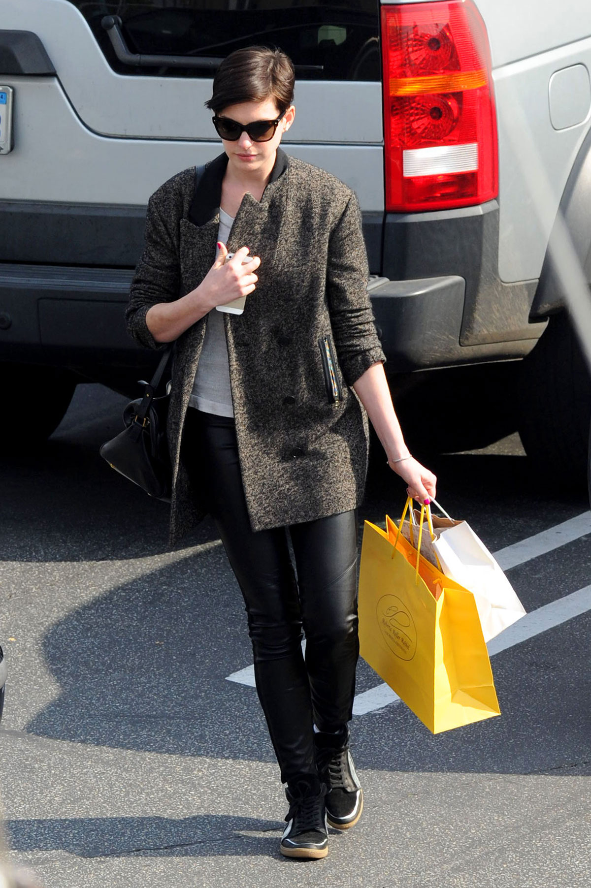 Anne Hathaway shops and lunches at the Brentwood Country Mart
