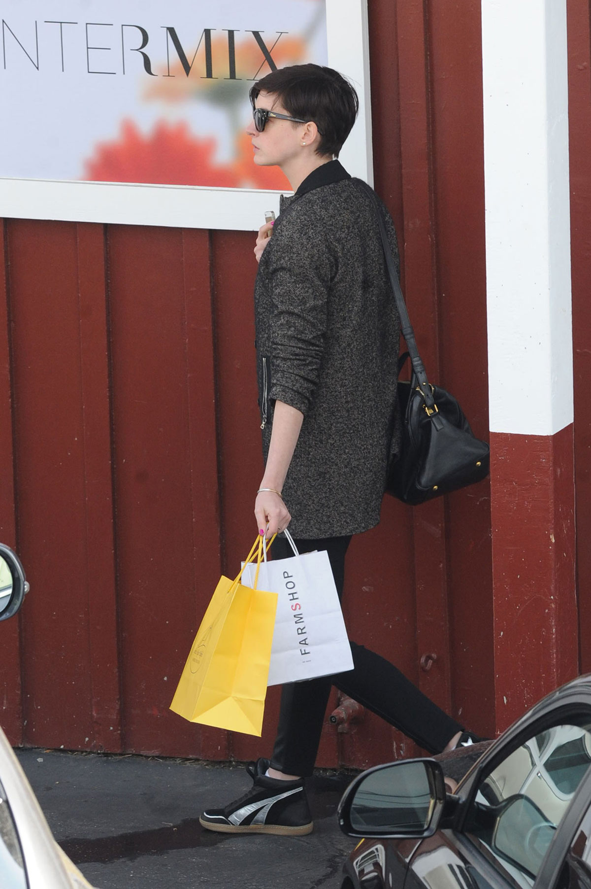 Anne Hathaway shops and lunches at the Brentwood Country Mart