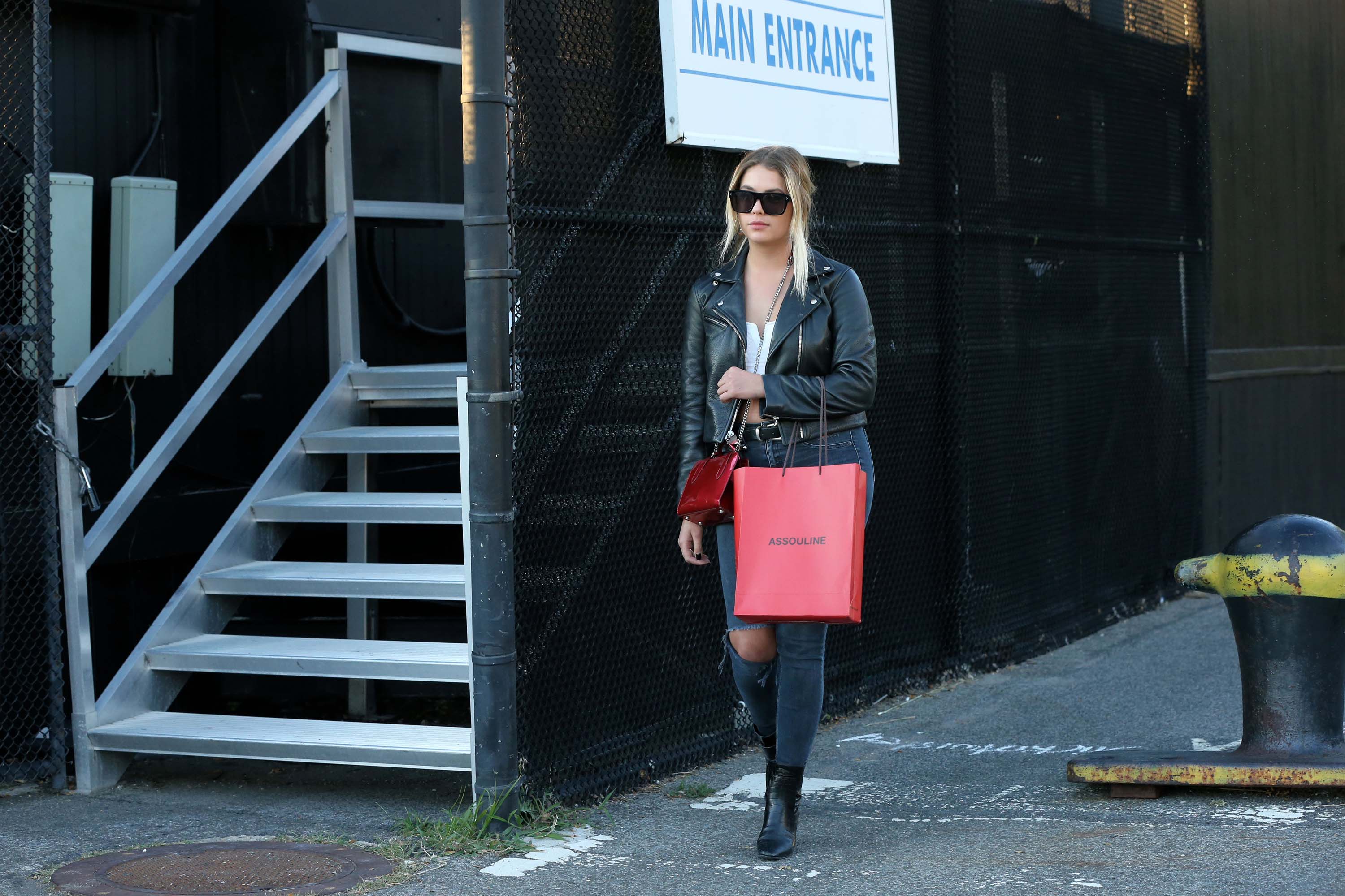 Ashley Benson at a heliport in NYC