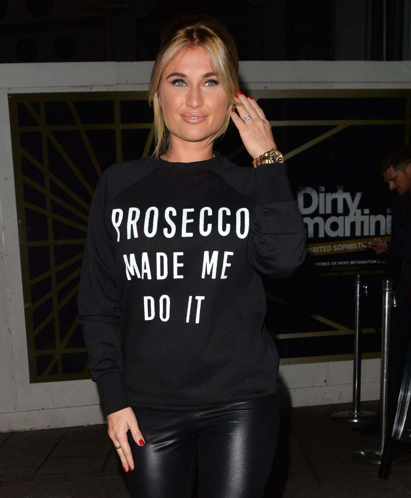 Billie Faiers seen leaving Dirty Martini in Hanover Sq