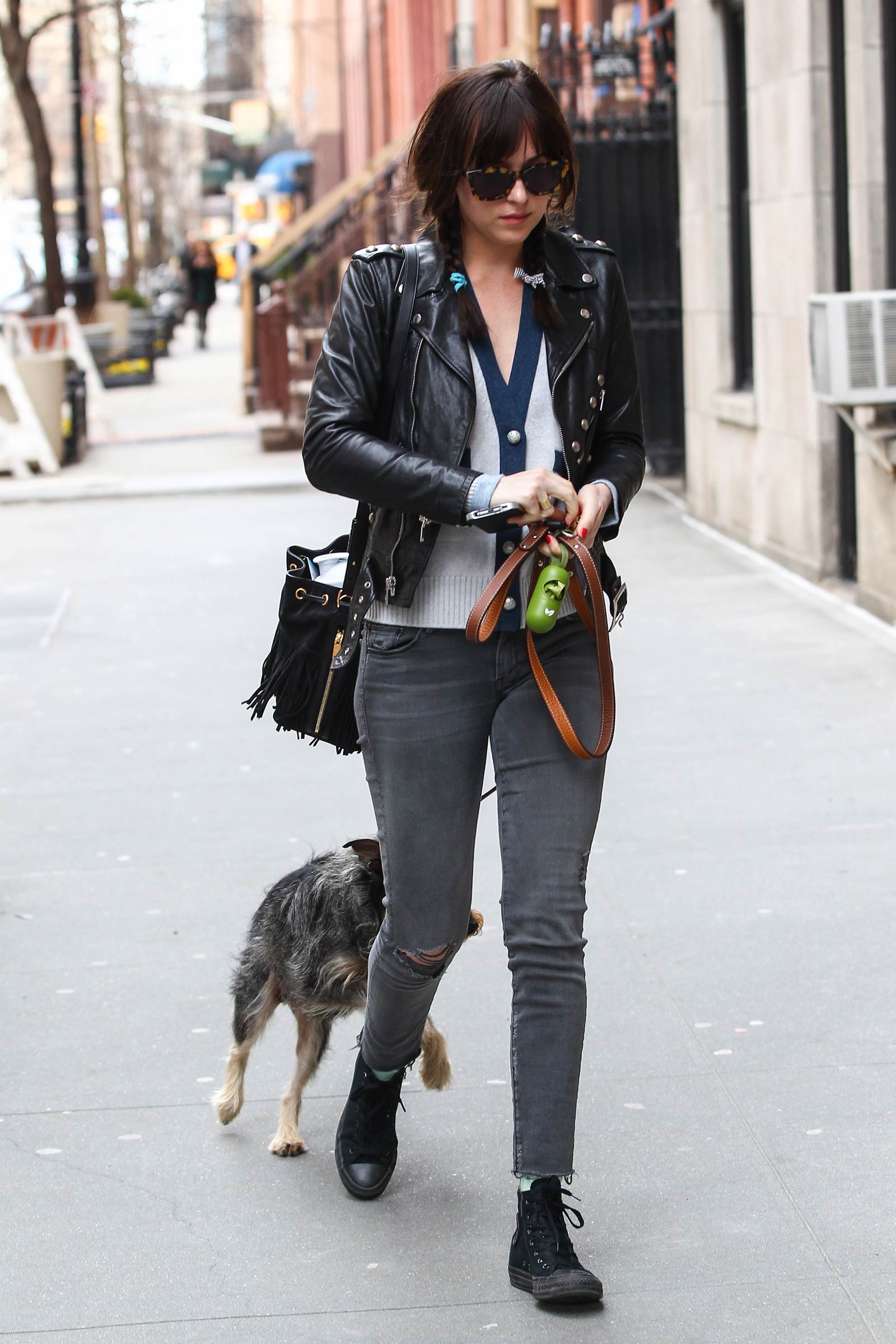 Dakota Johnson waking her dog in NYC