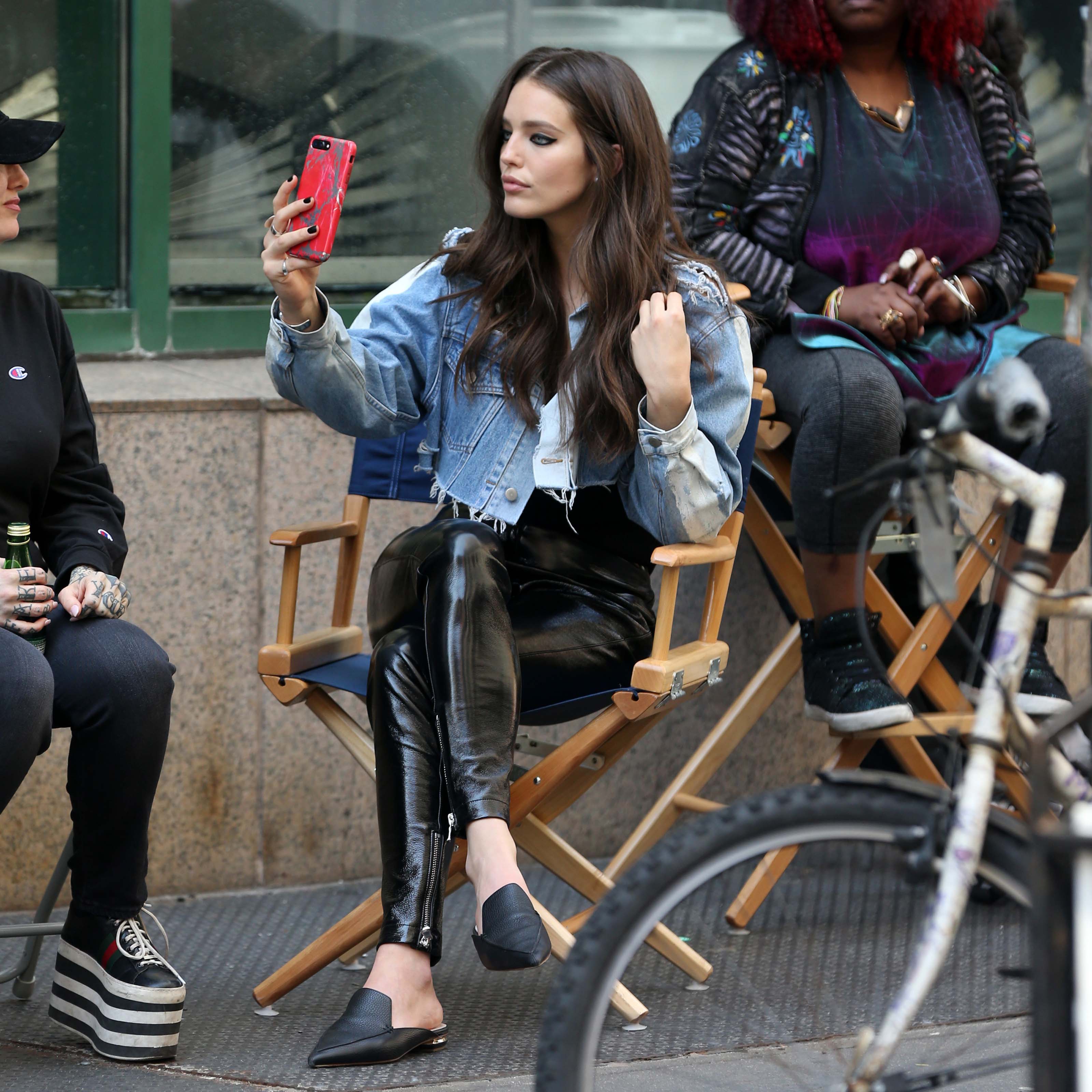 Emily DiDonato filming a Maybelline commercial