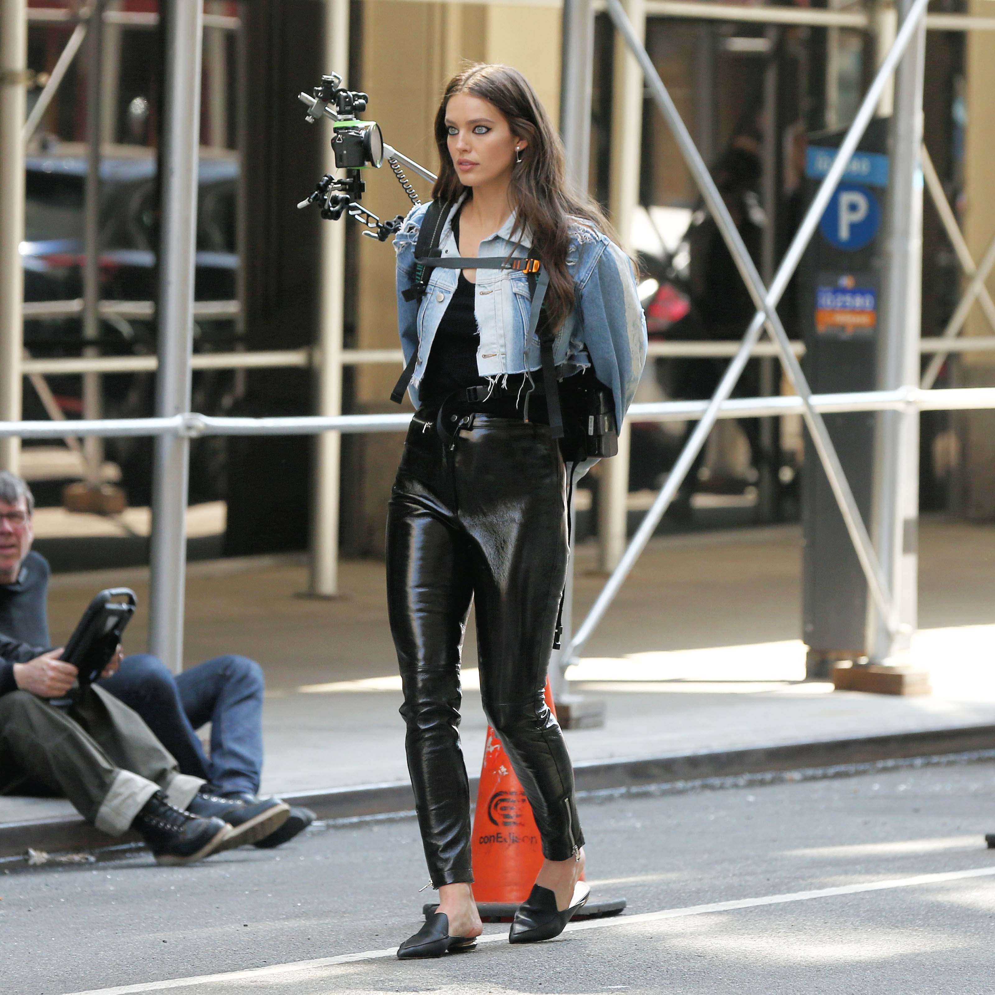 Emily DiDonato filming a Maybelline commercial