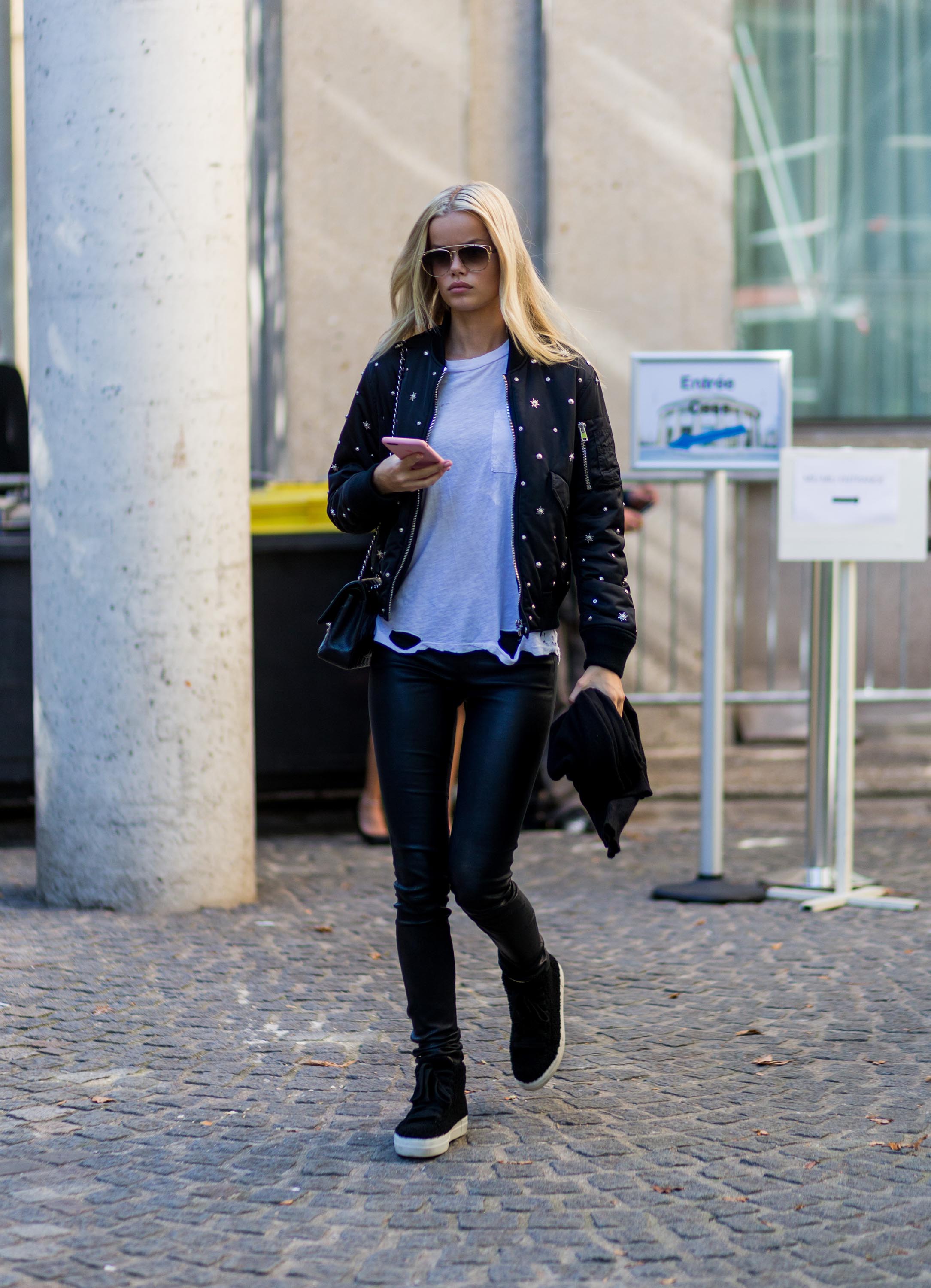Frida Aasen outside Miu Miu on October 5, 2016 in Paris, France.