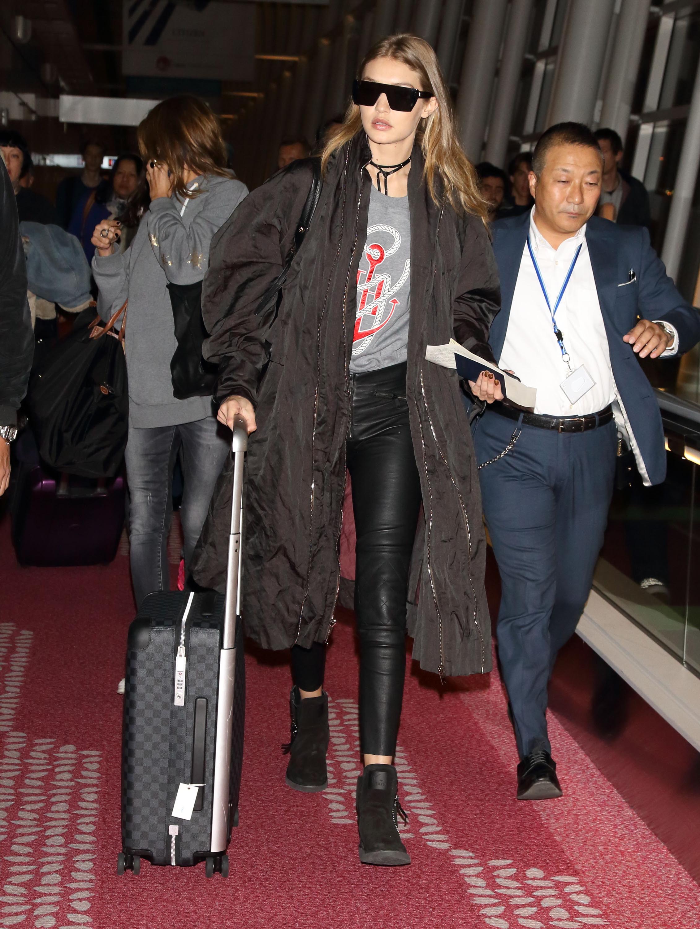 Gigi Hadid is seen at Haneda Airport