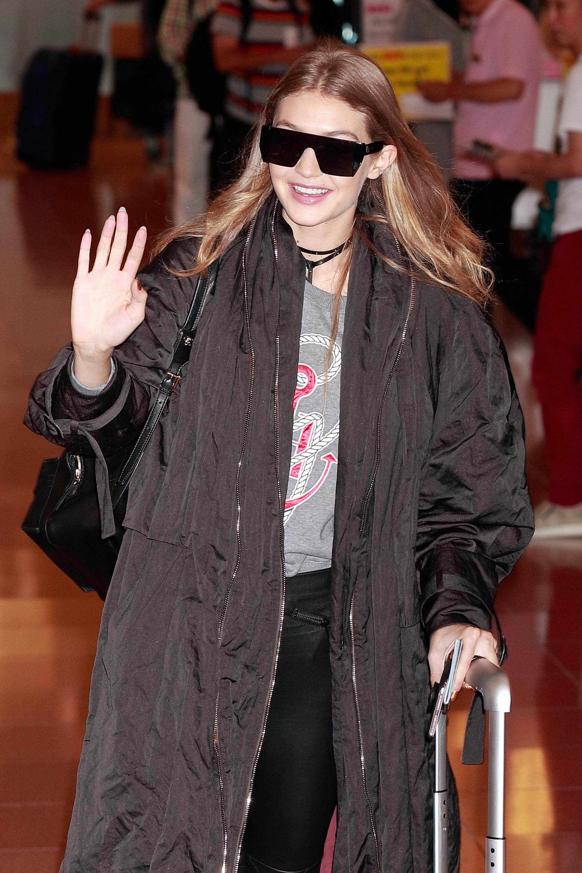 Gigi Hadid is seen at Haneda Airport