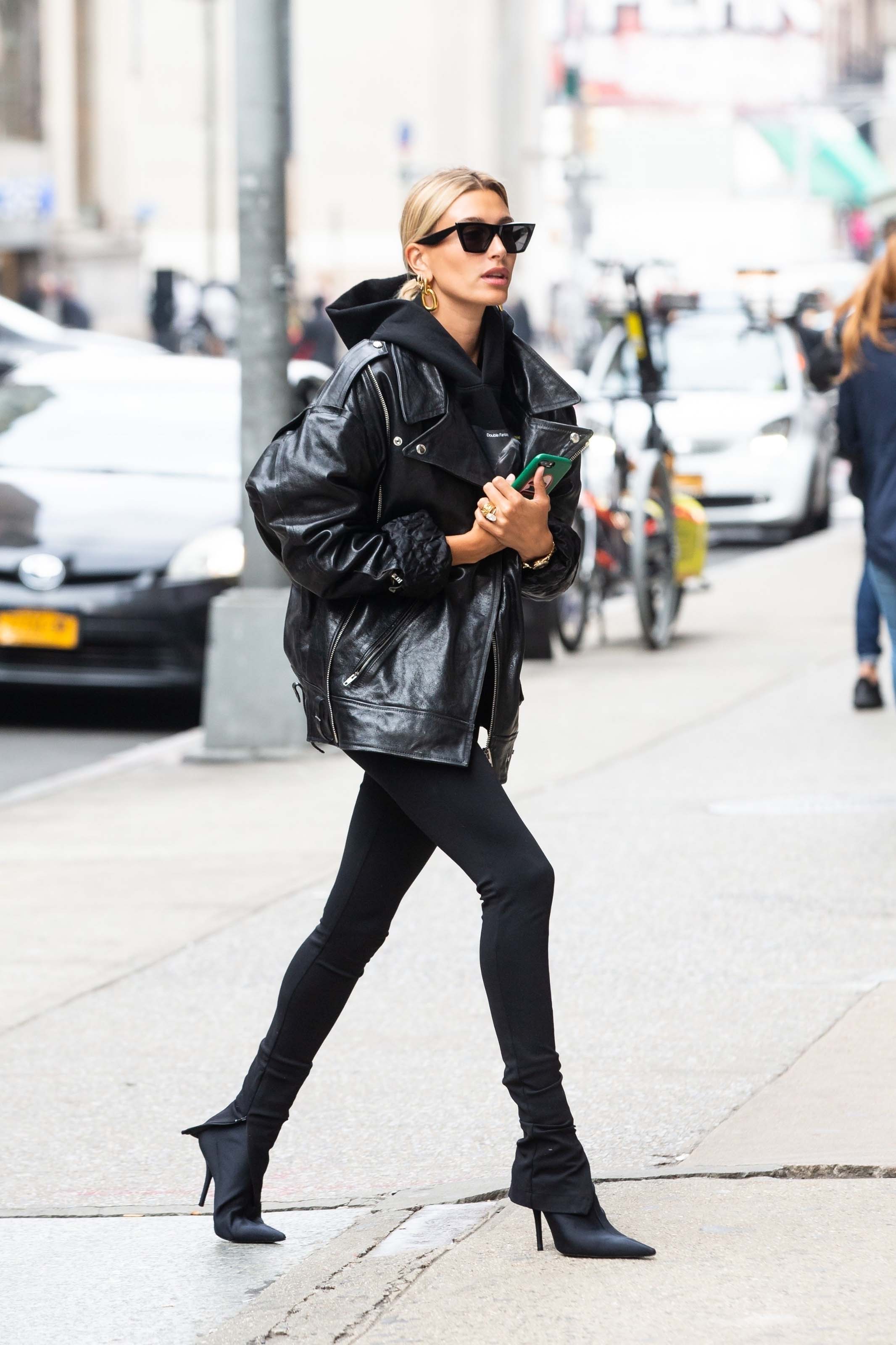 Hailey Baldwin arriving at an office building