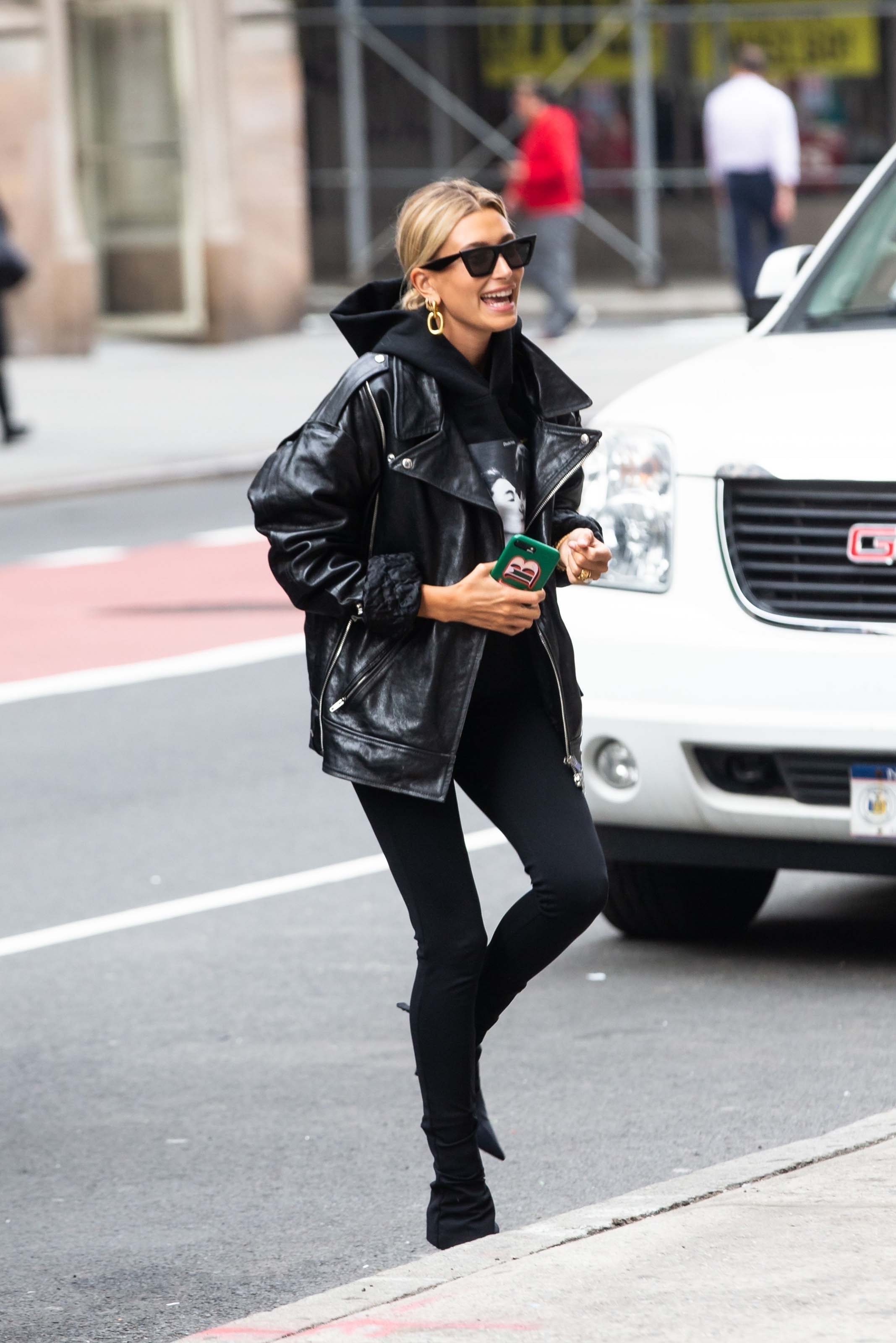 Hailey Baldwin arriving at an office building