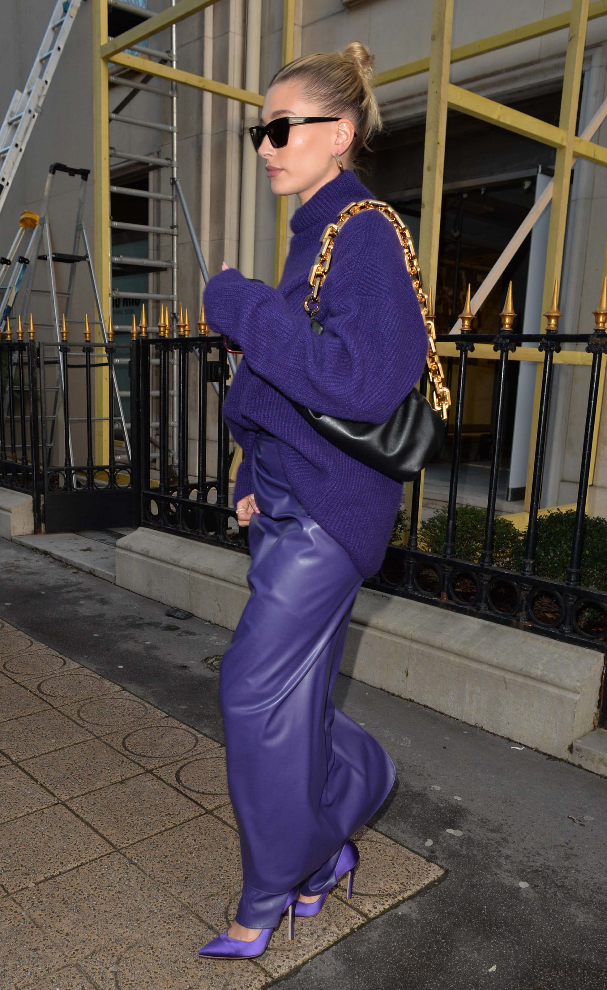 Hailey Bieber seen going out of the Balenciaga store