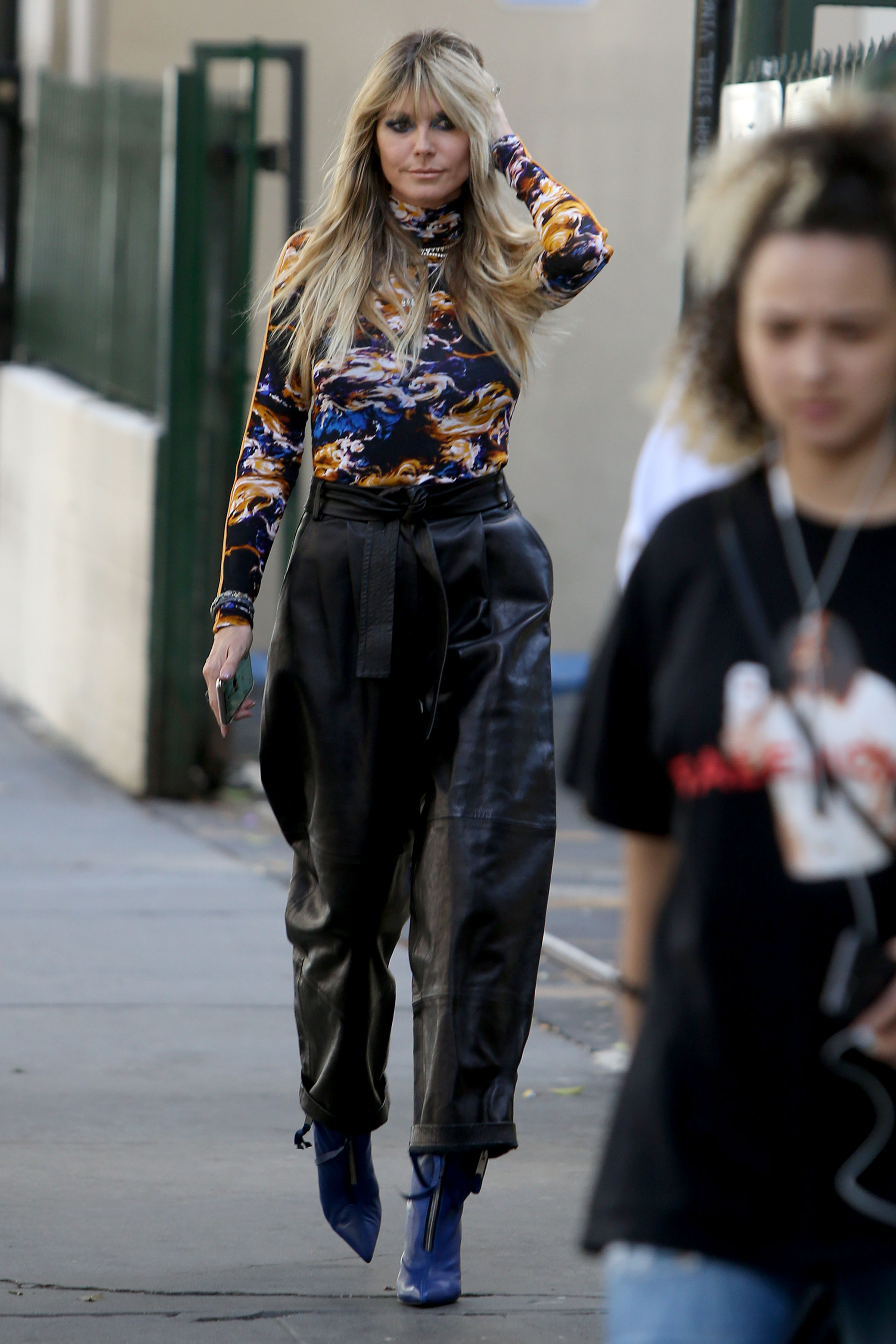 Heidi Klum walking to the Germany’s Next Topmodel set