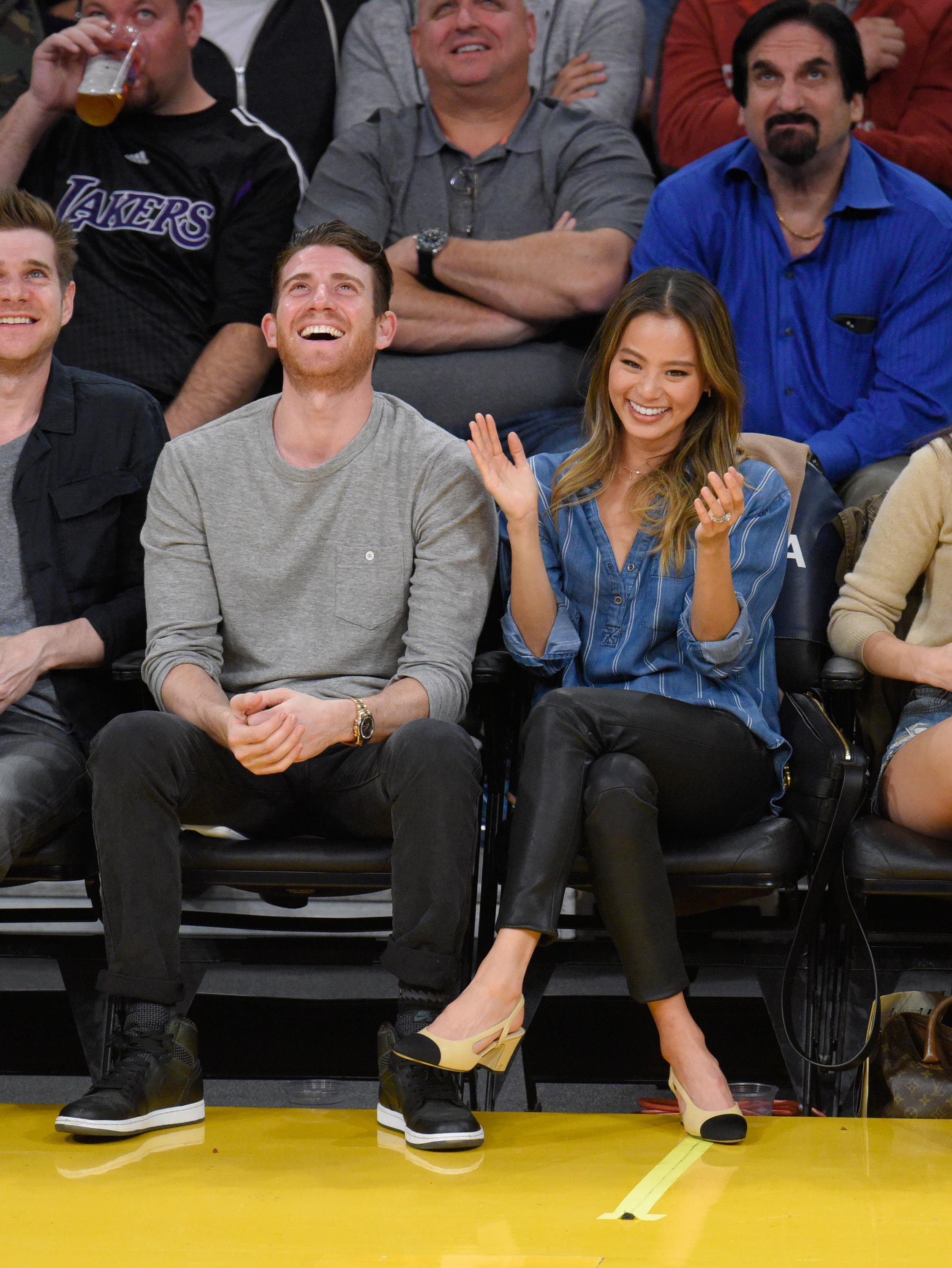 Jamie Chung attends a basketball game