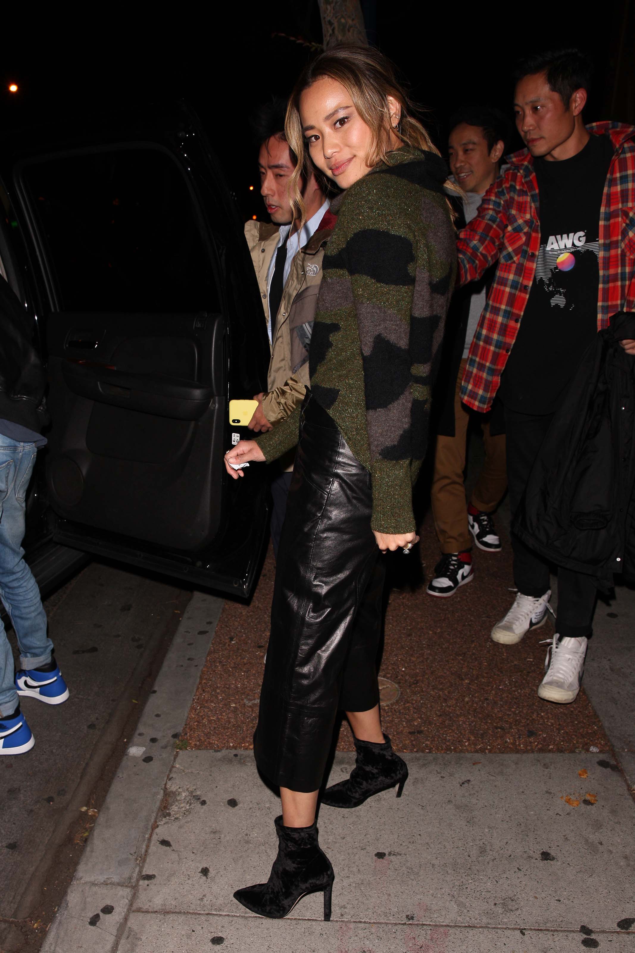 Jamie Chung leaves the Delilah club with a male friend