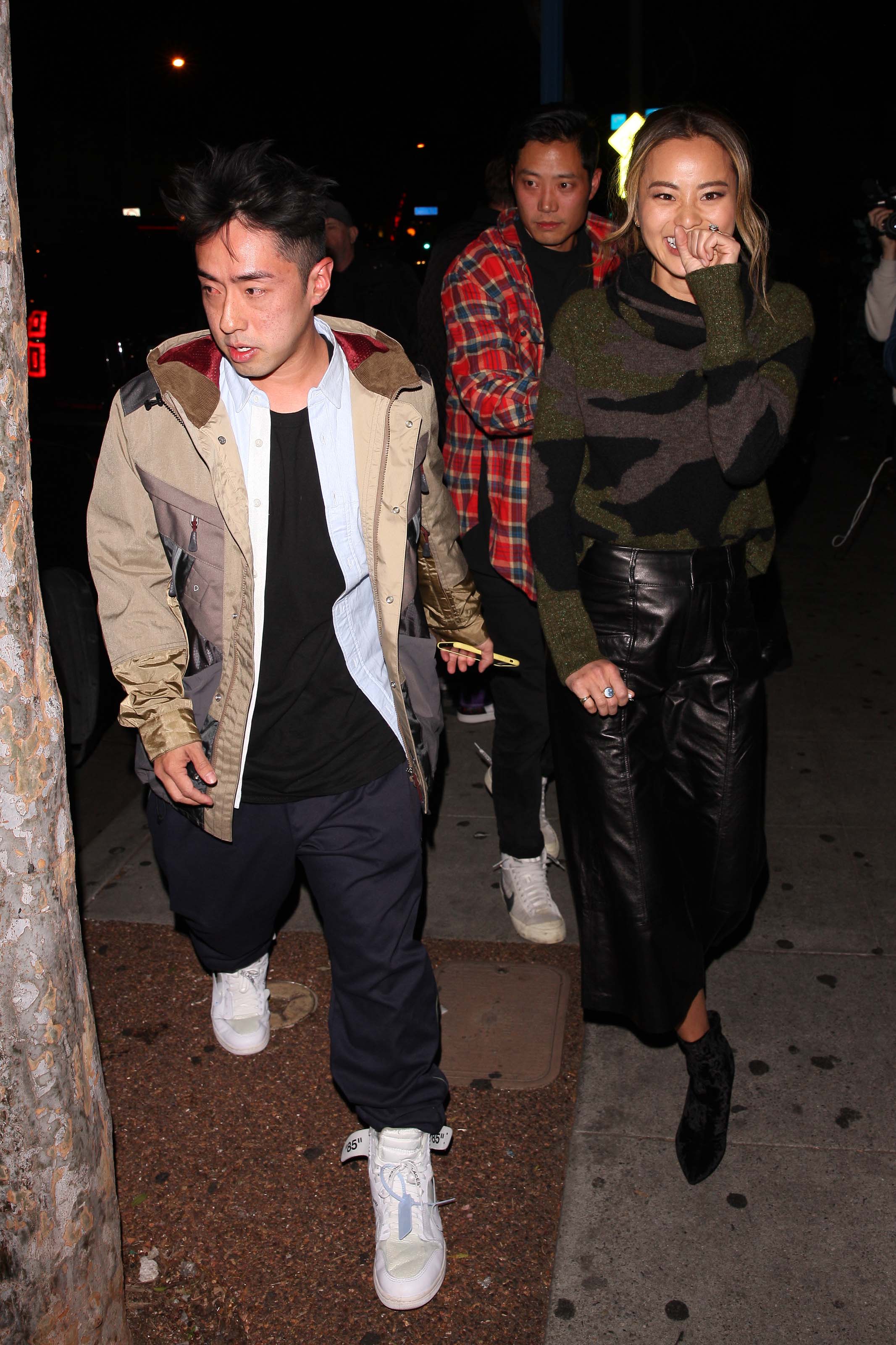 Jamie Chung leaves the Delilah club with a male friend