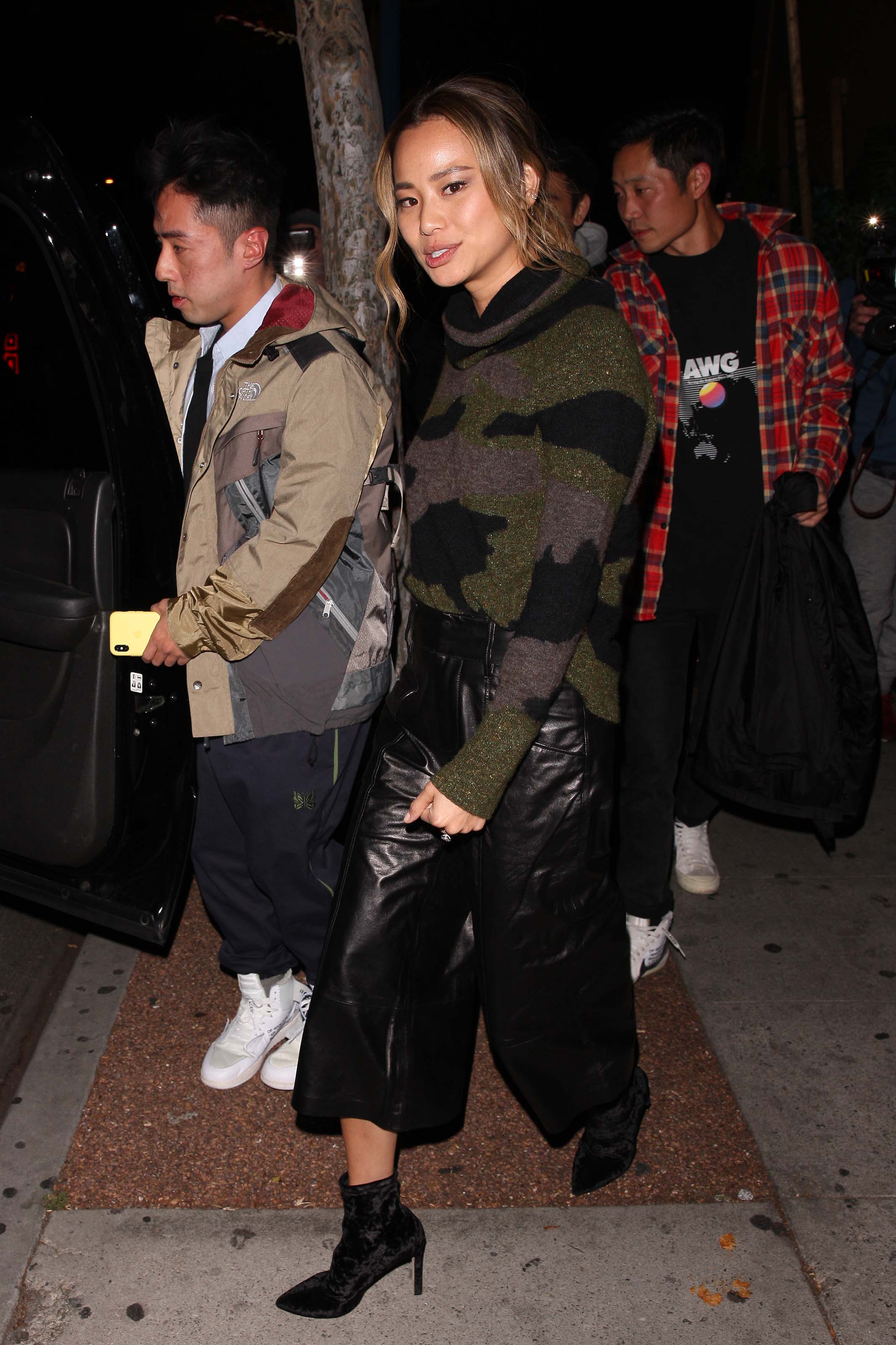 Jamie Chung leaves the Delilah club with a male friend