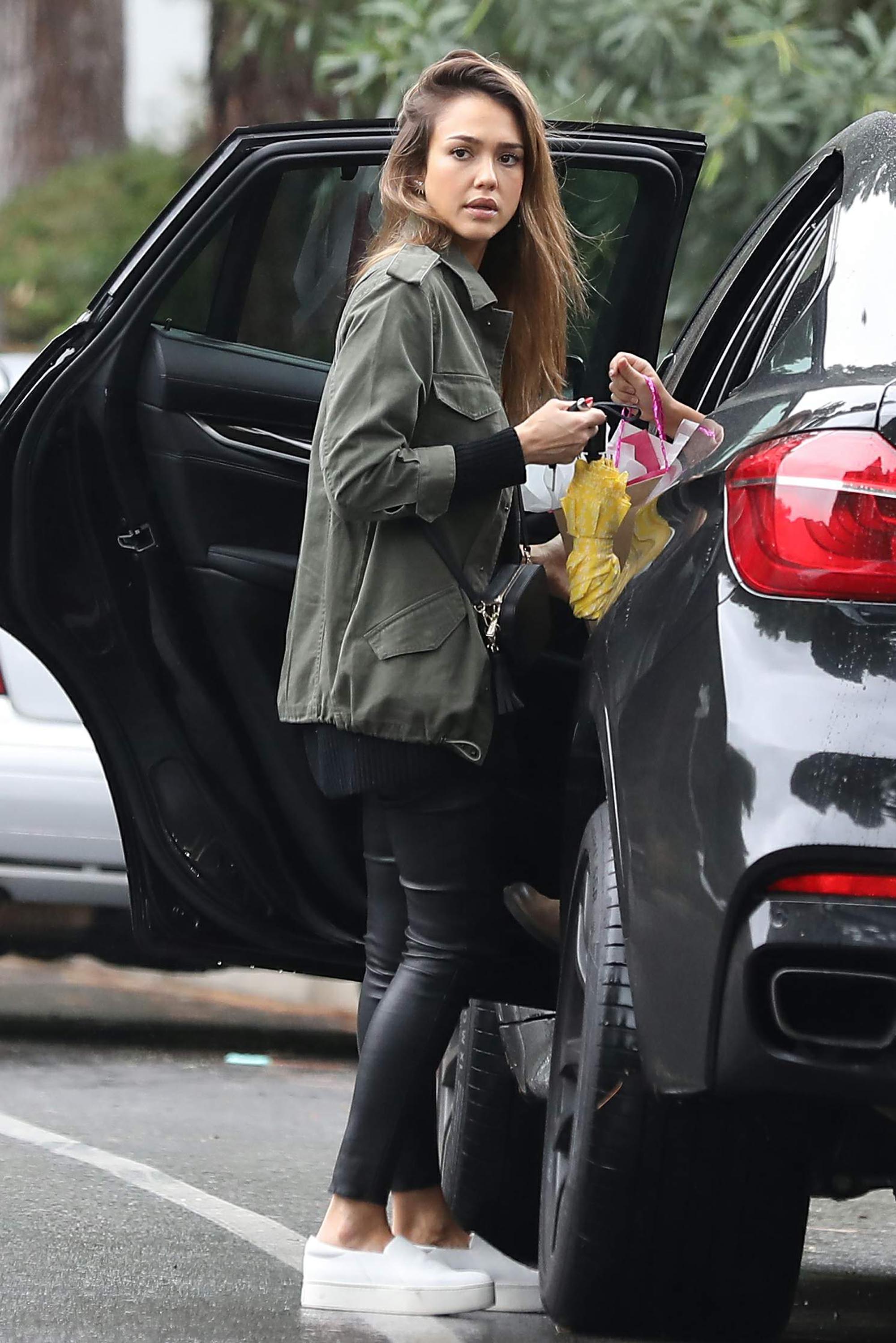 Jessica Alba arriving to a home in Beverly Hills