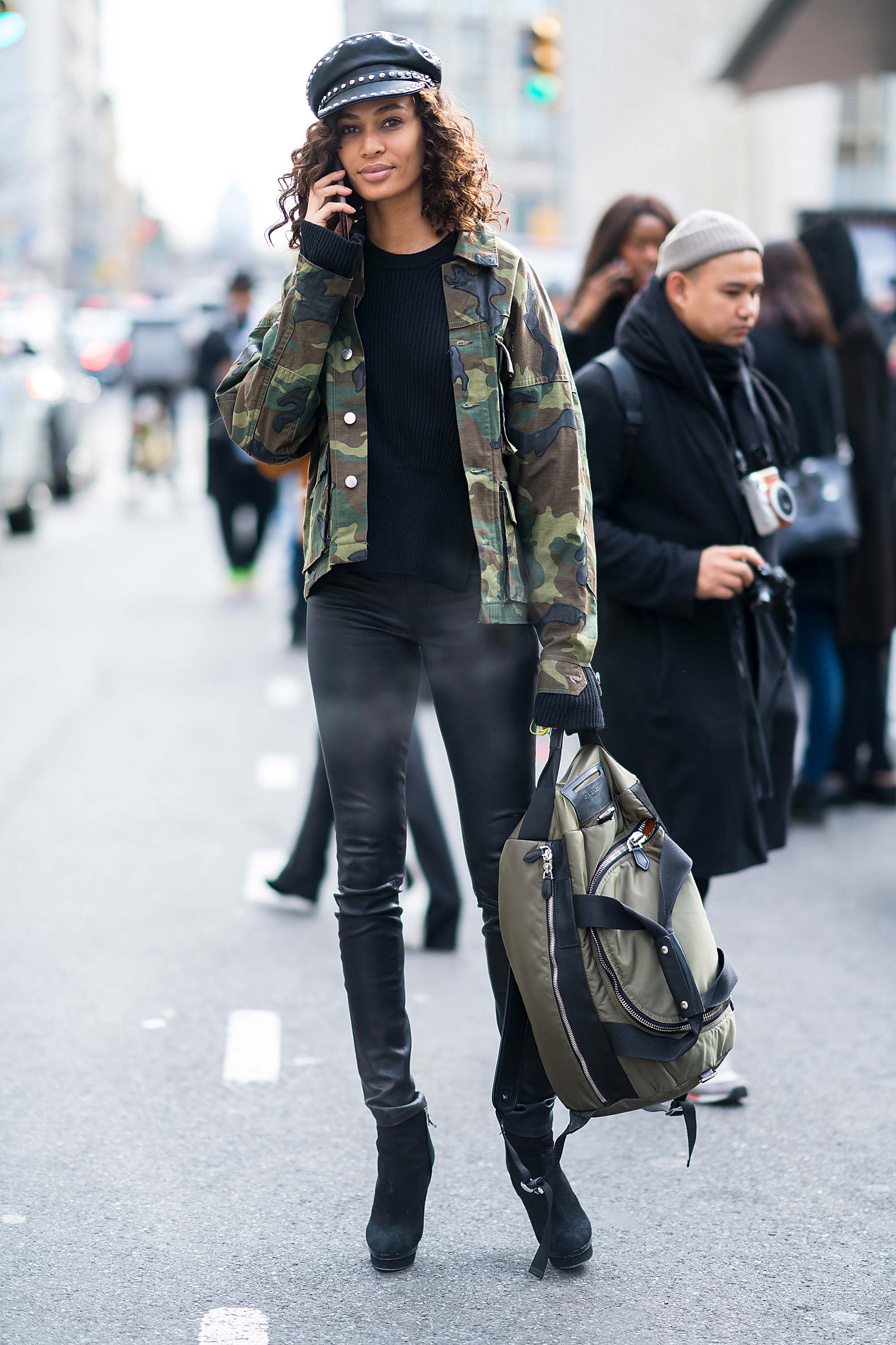 Joan Smalls outside the Michael Kors show