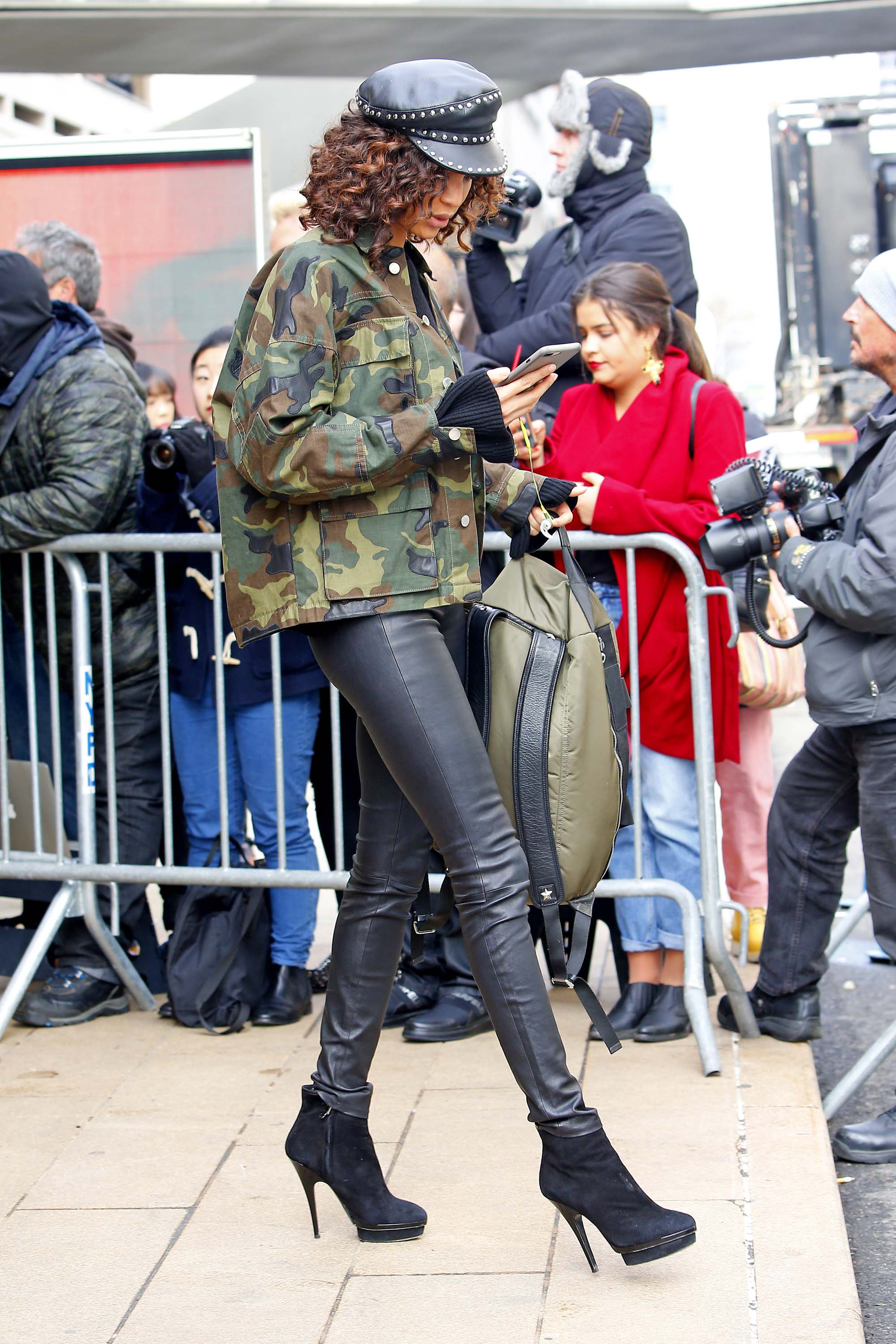 Joan Smalls outside the Michael Kors show