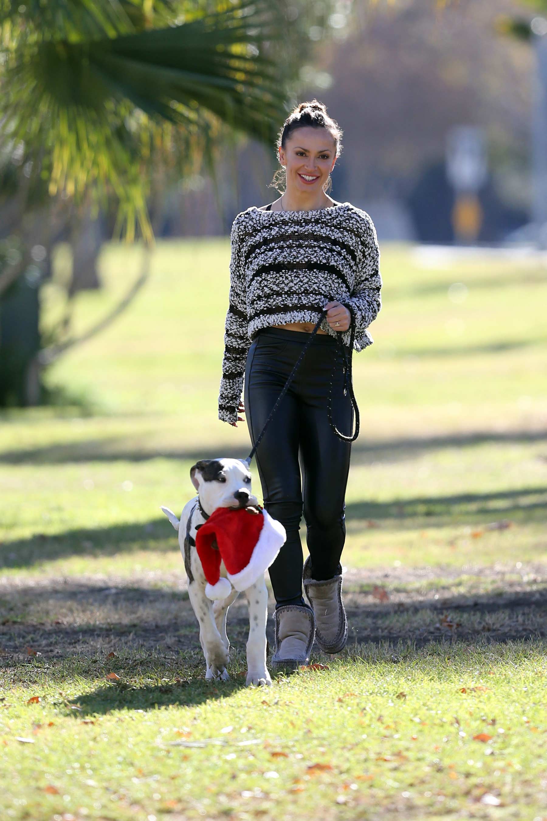 Karina Smirnoff walking her dog in Woodland Hills