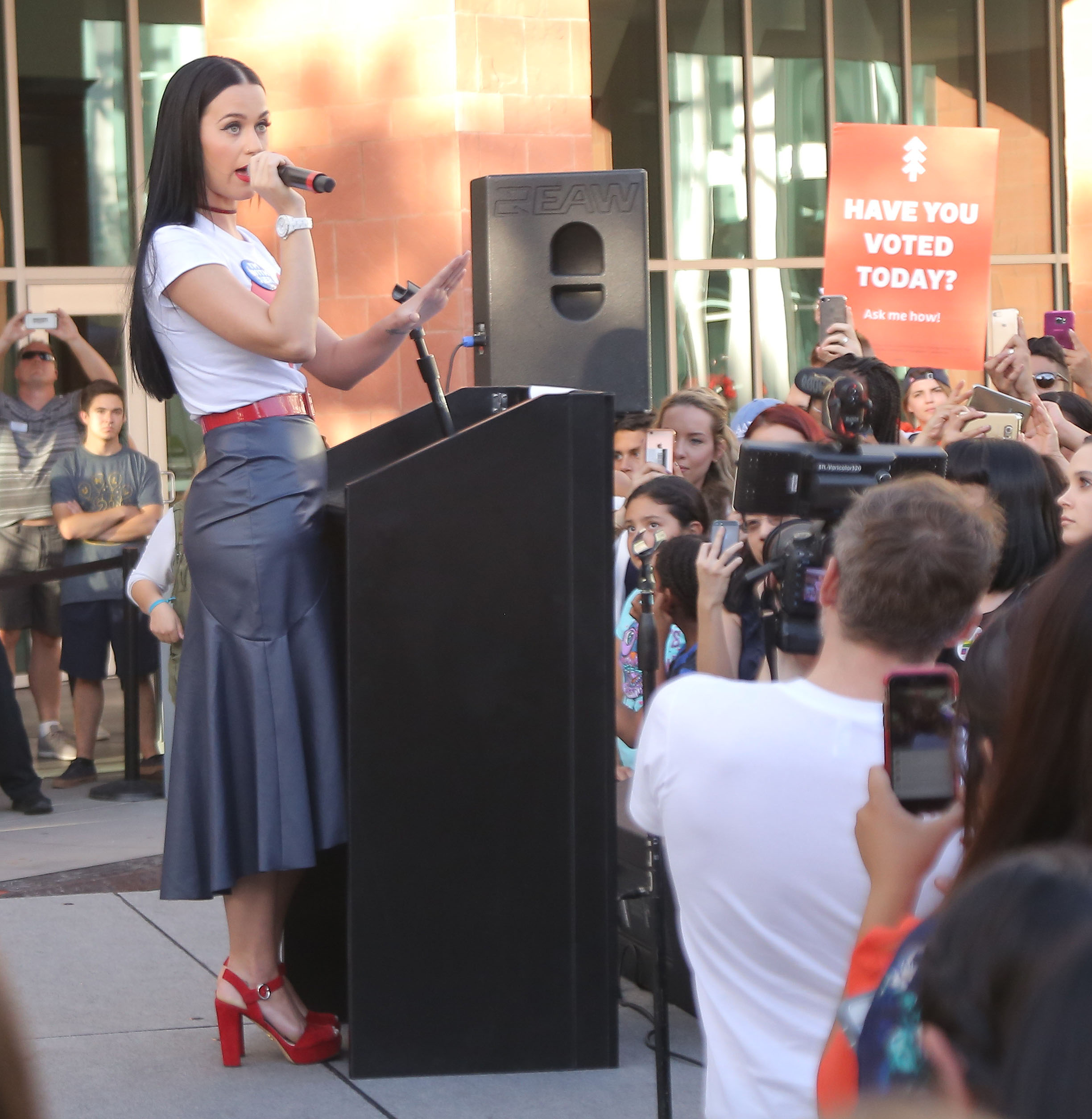 Katy Perry canvasses for Democratic presidential candidate Hillary Clinton