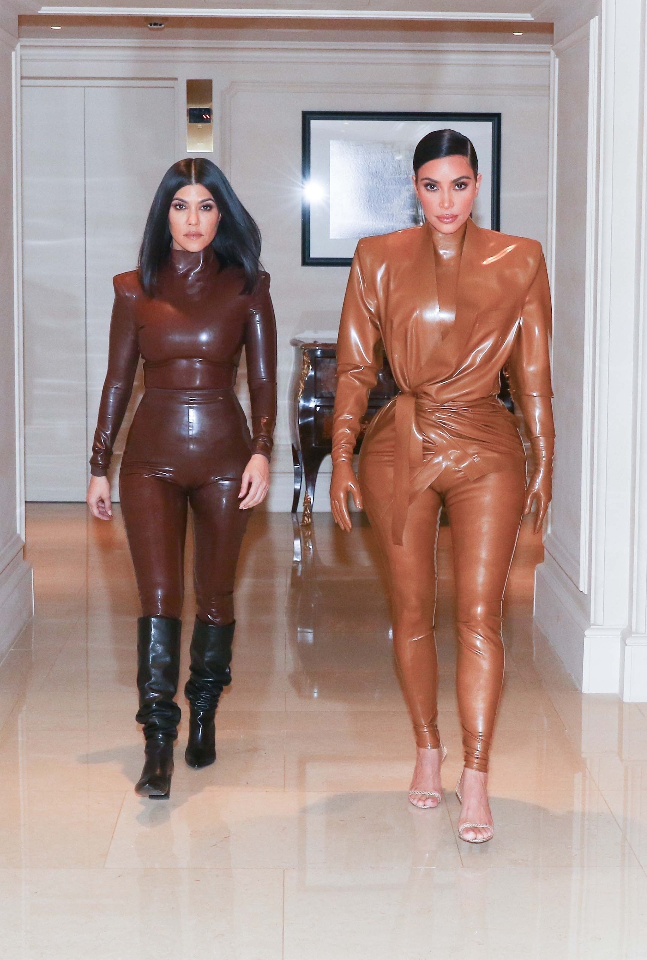 Kim Kardashian & Kourtney Kardashian seen out & about in Paris