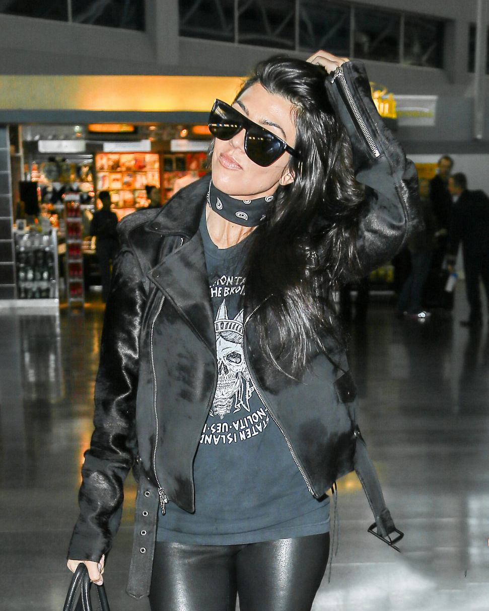 Kourtney Kardashian is seen at LAX and JFK airports