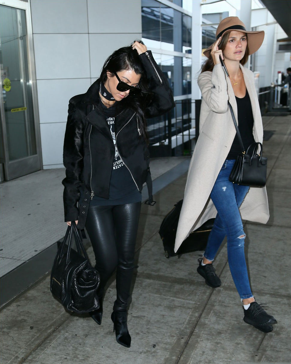 Kourtney Kardashian is seen at LAX and JFK airports