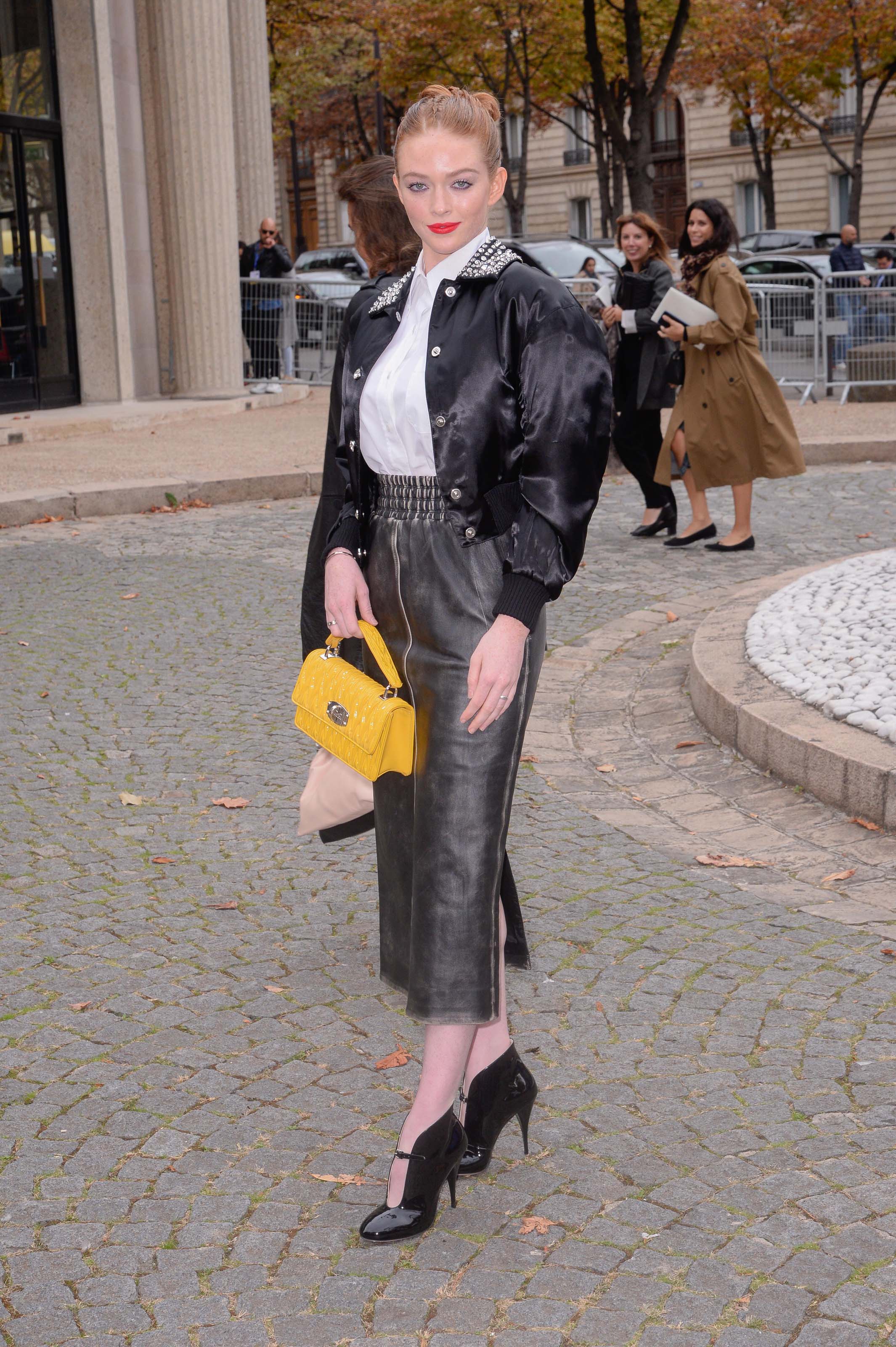 Larsen Thompson outside the Miu Miu Fasion Show