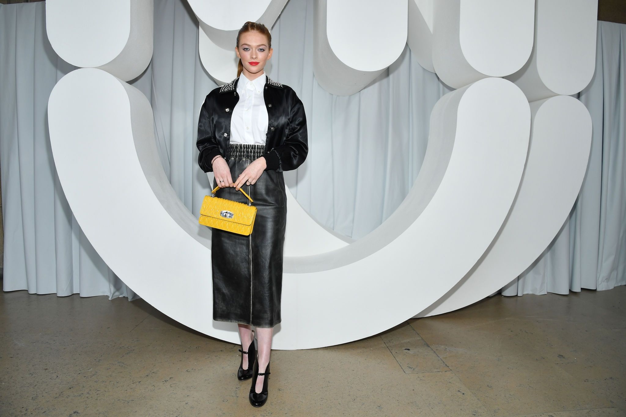 Larsen Thompson outside the Miu Miu Fasion Show