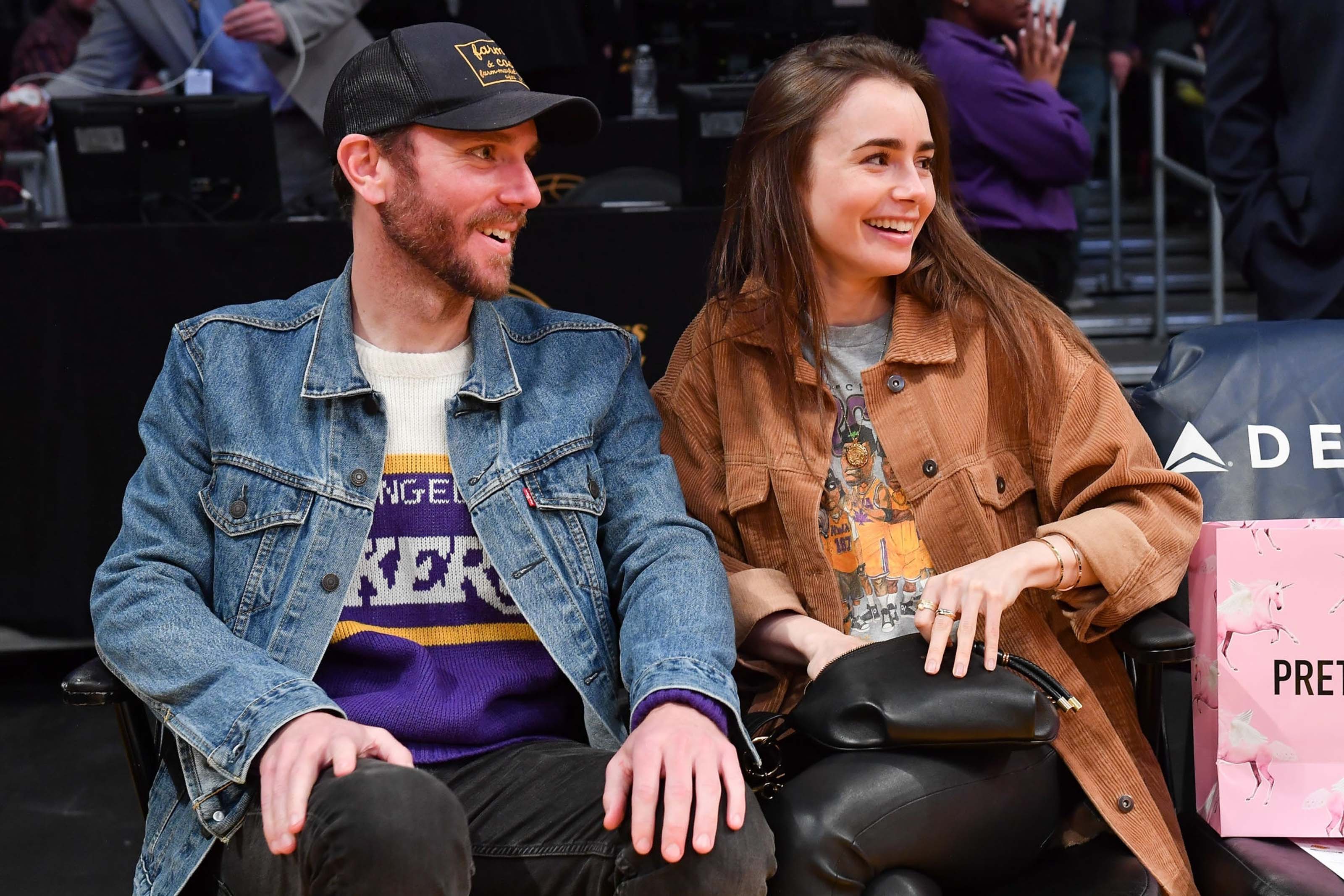 Lily Collins at a Los Angeles Lakers game
