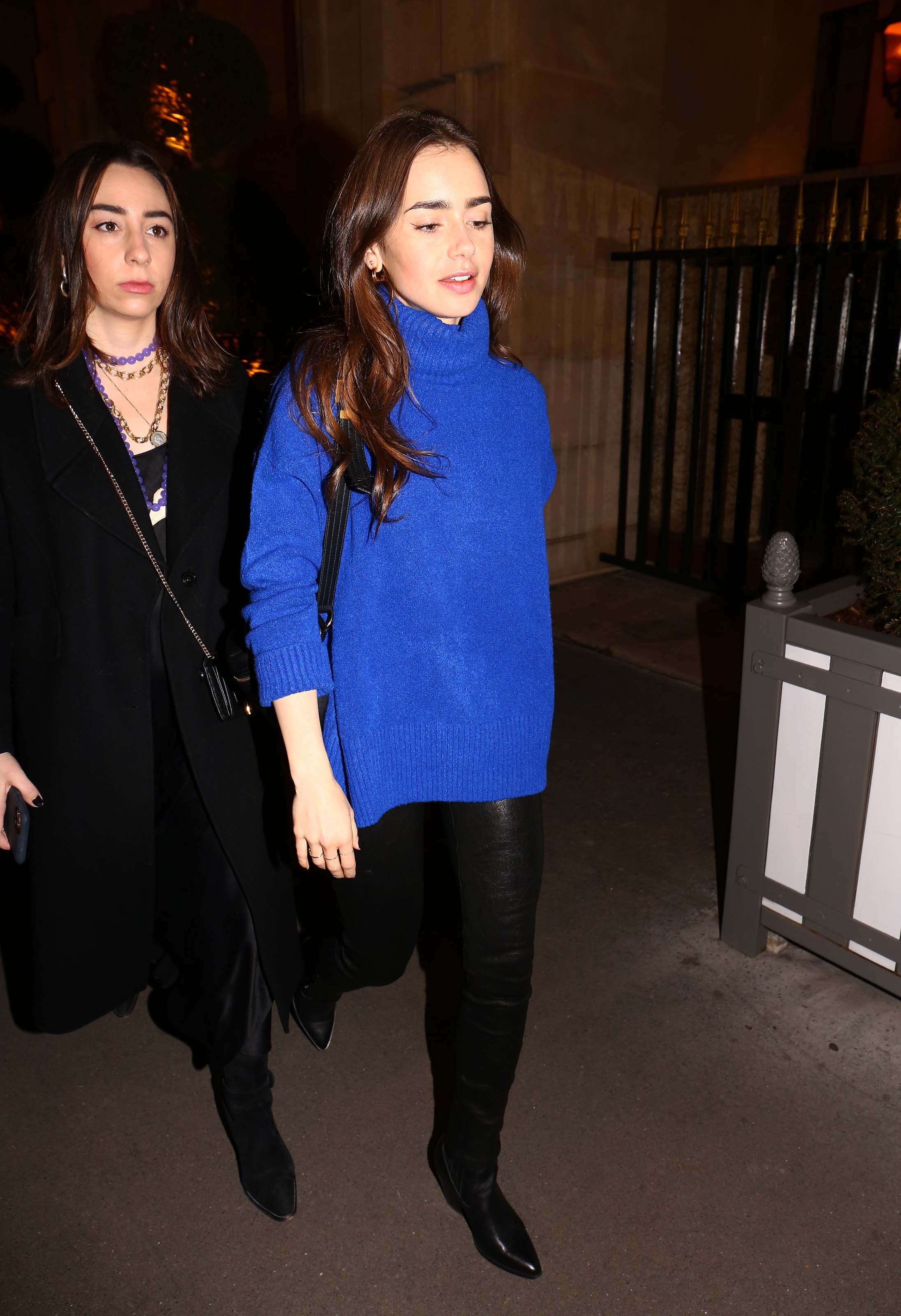 Lily Collins at her hotel in Paris