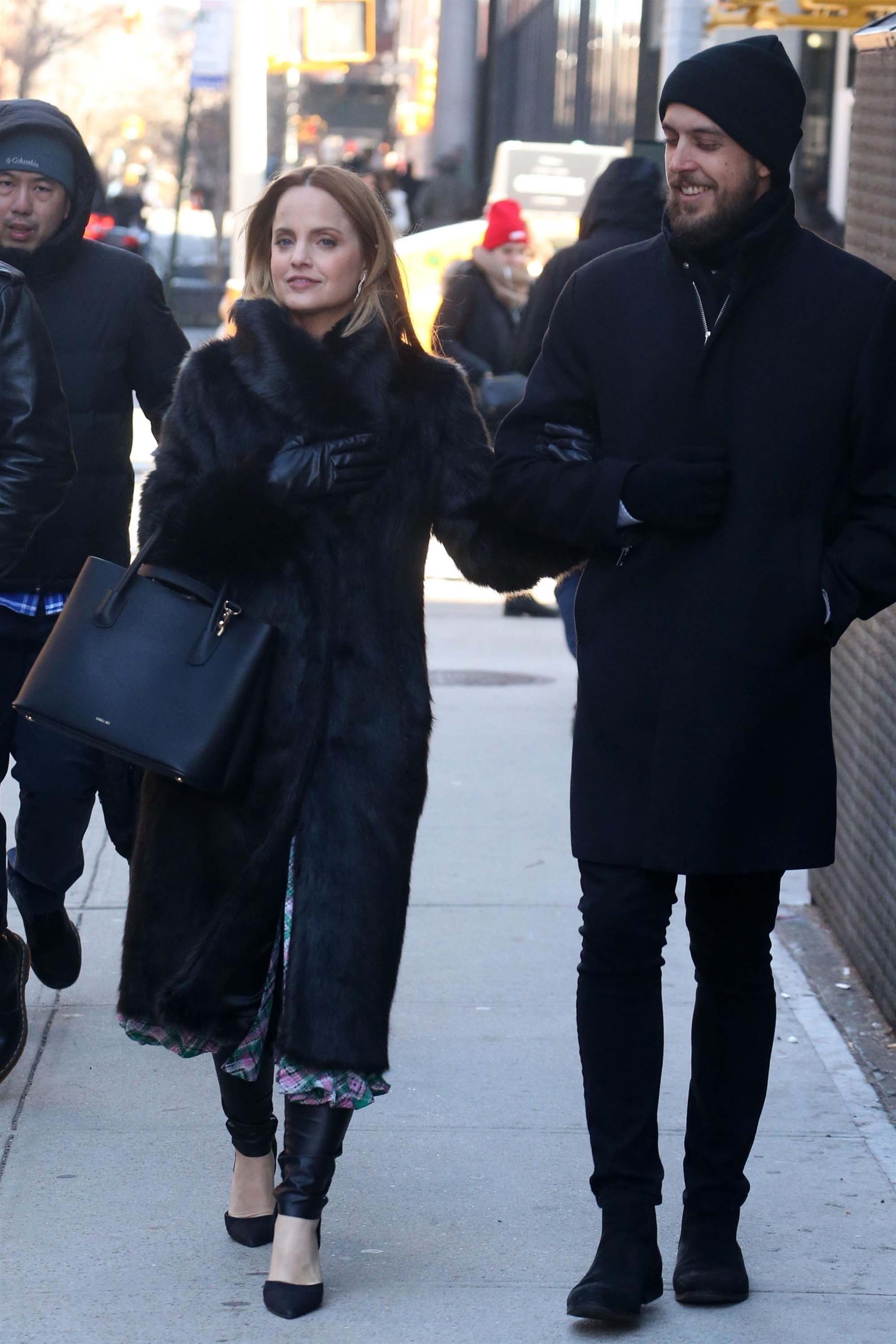 Mena Suvari arrives at AOL Build
