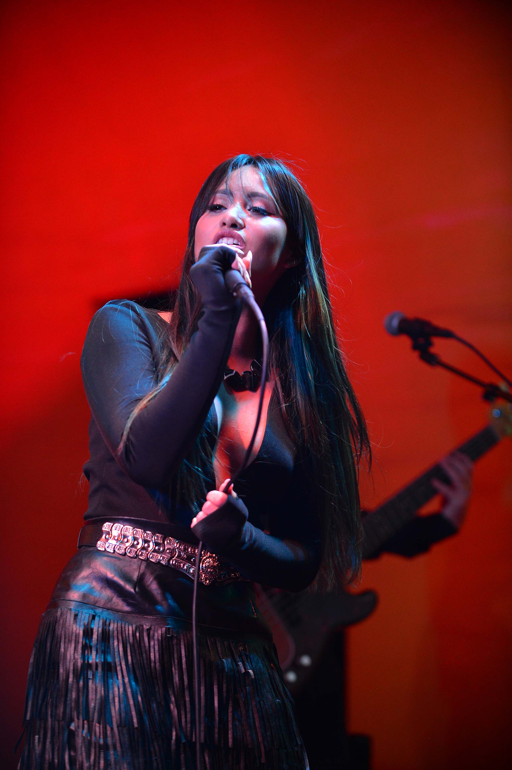 Michelle Sussett performs on stage