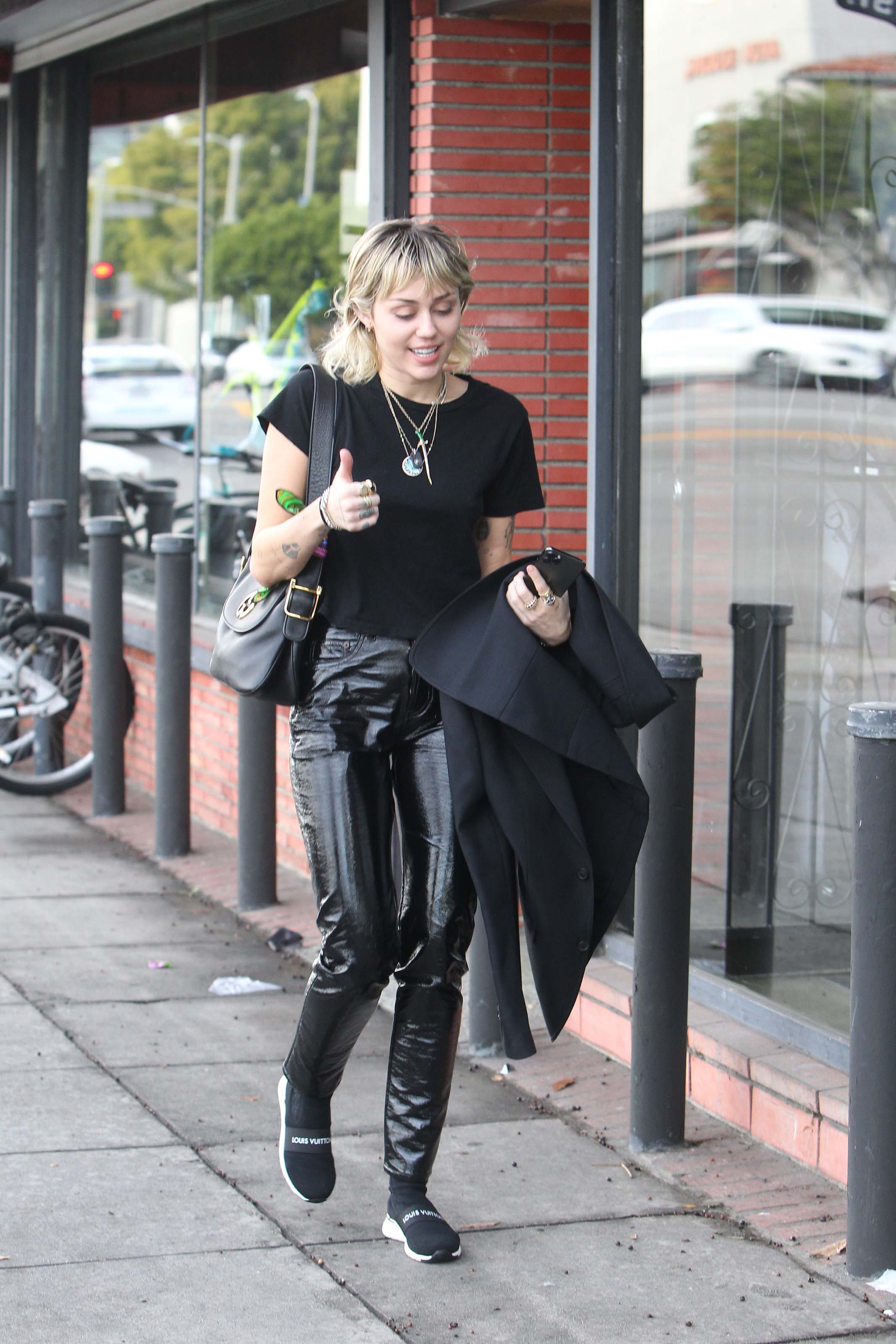 Miley Cyrus arrives at a studio