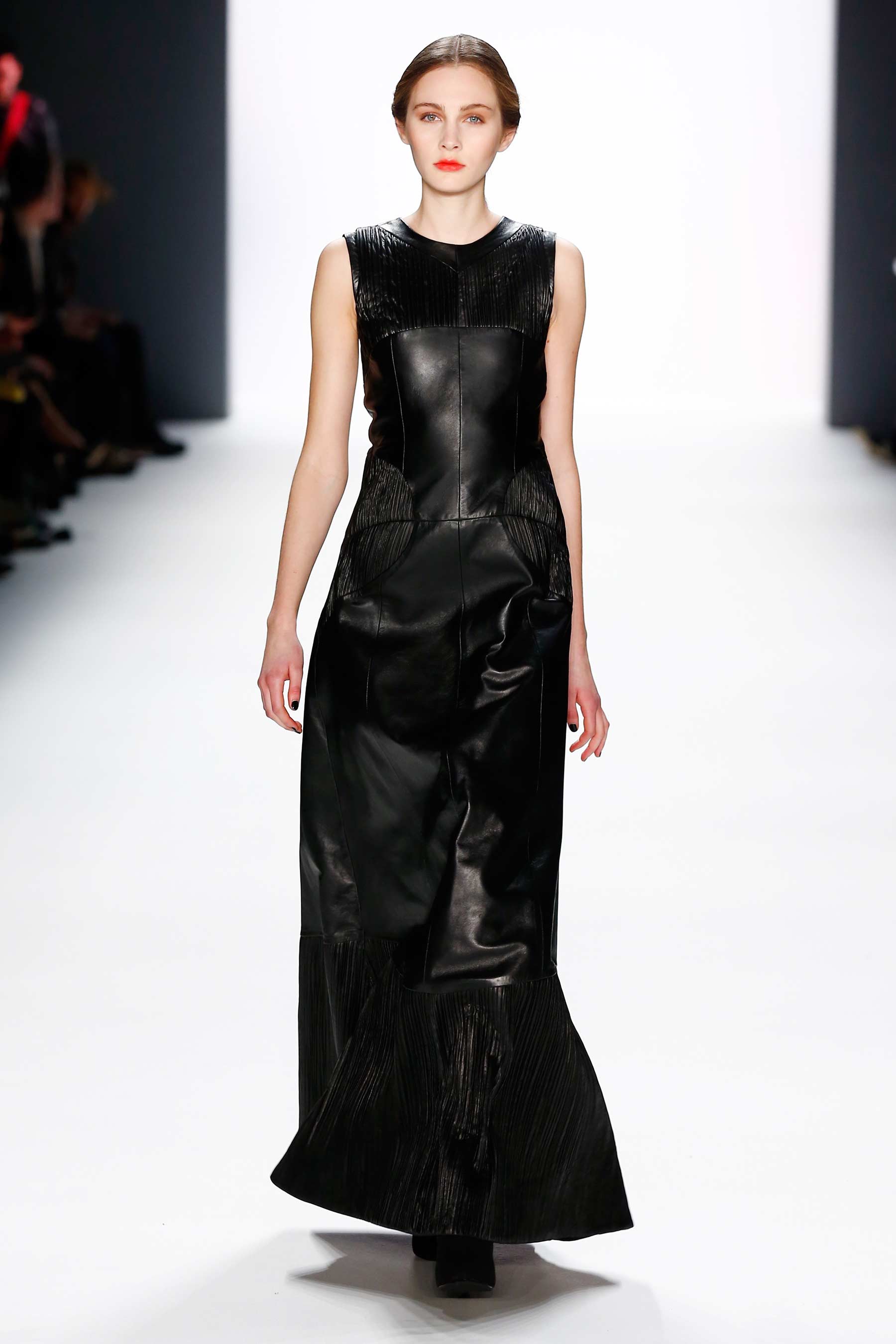 Models walk the runway at the Mercedes-Benz Fashion Week Berlin