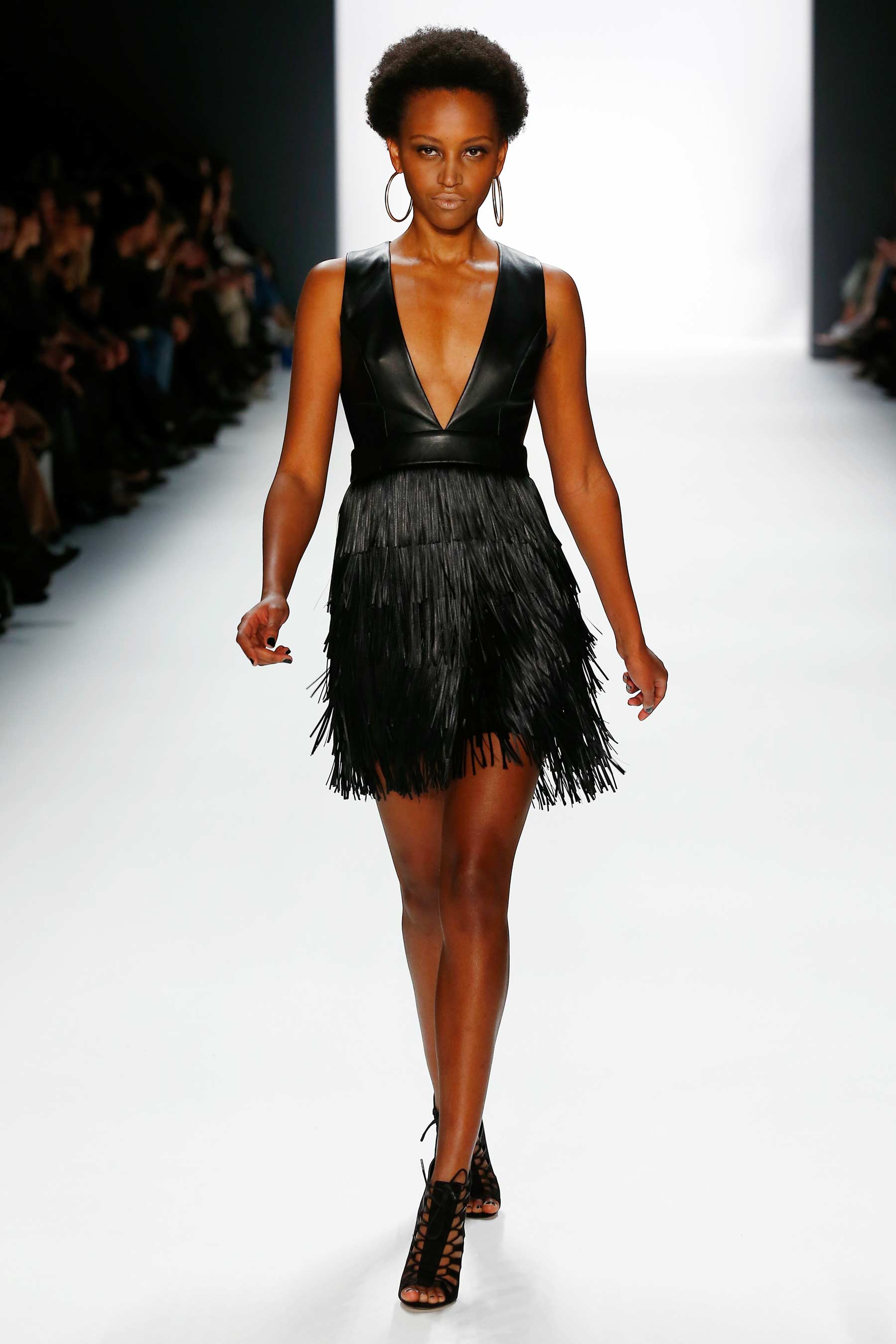 Models walk the runway at the Mercedes-Benz Fashion Week Berlin
