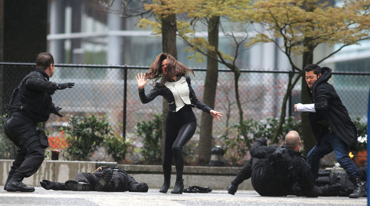 Peyton List on the set of The Tomorrow People