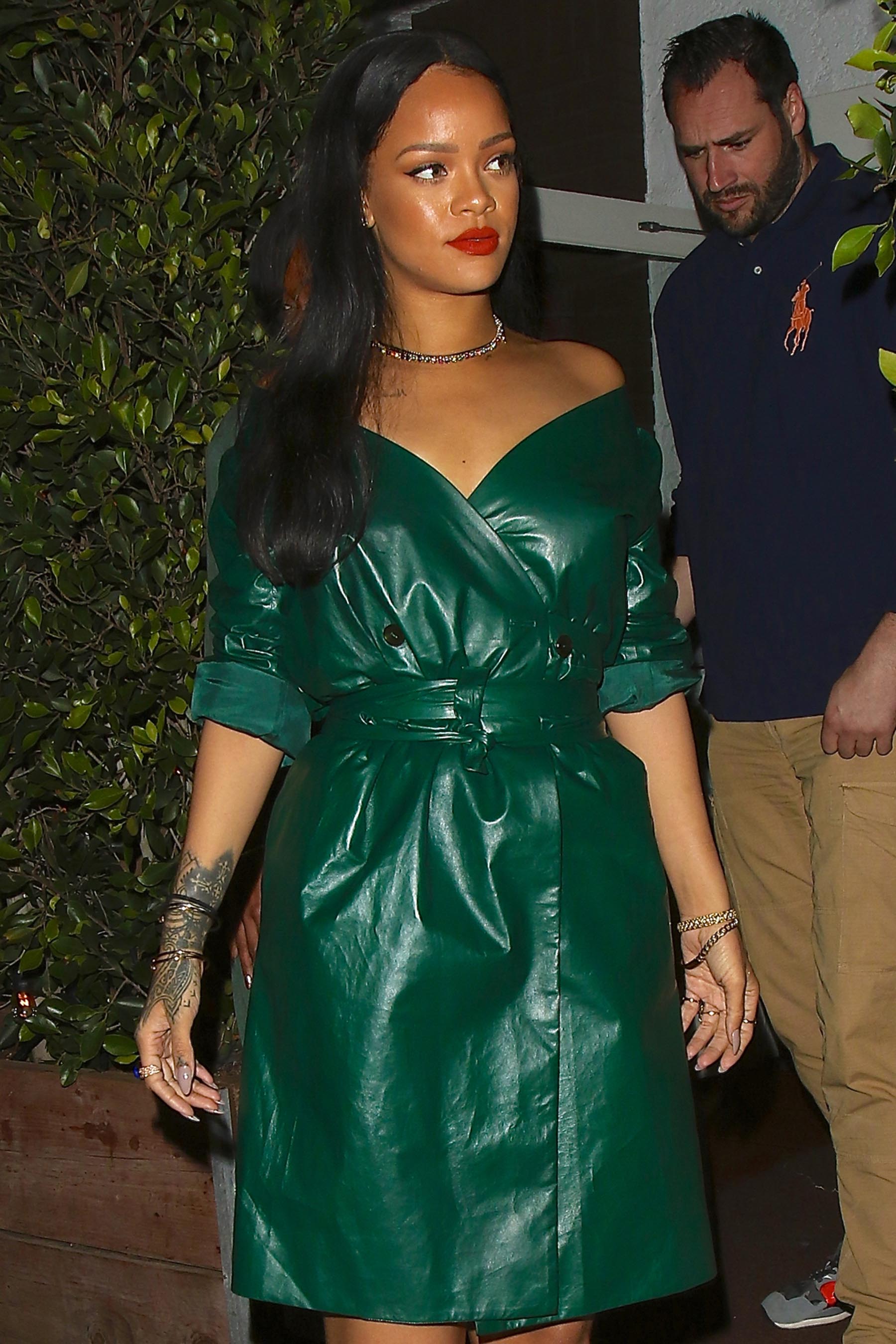 Rihanna is spotted leaving dinner at Giorgio Baldi