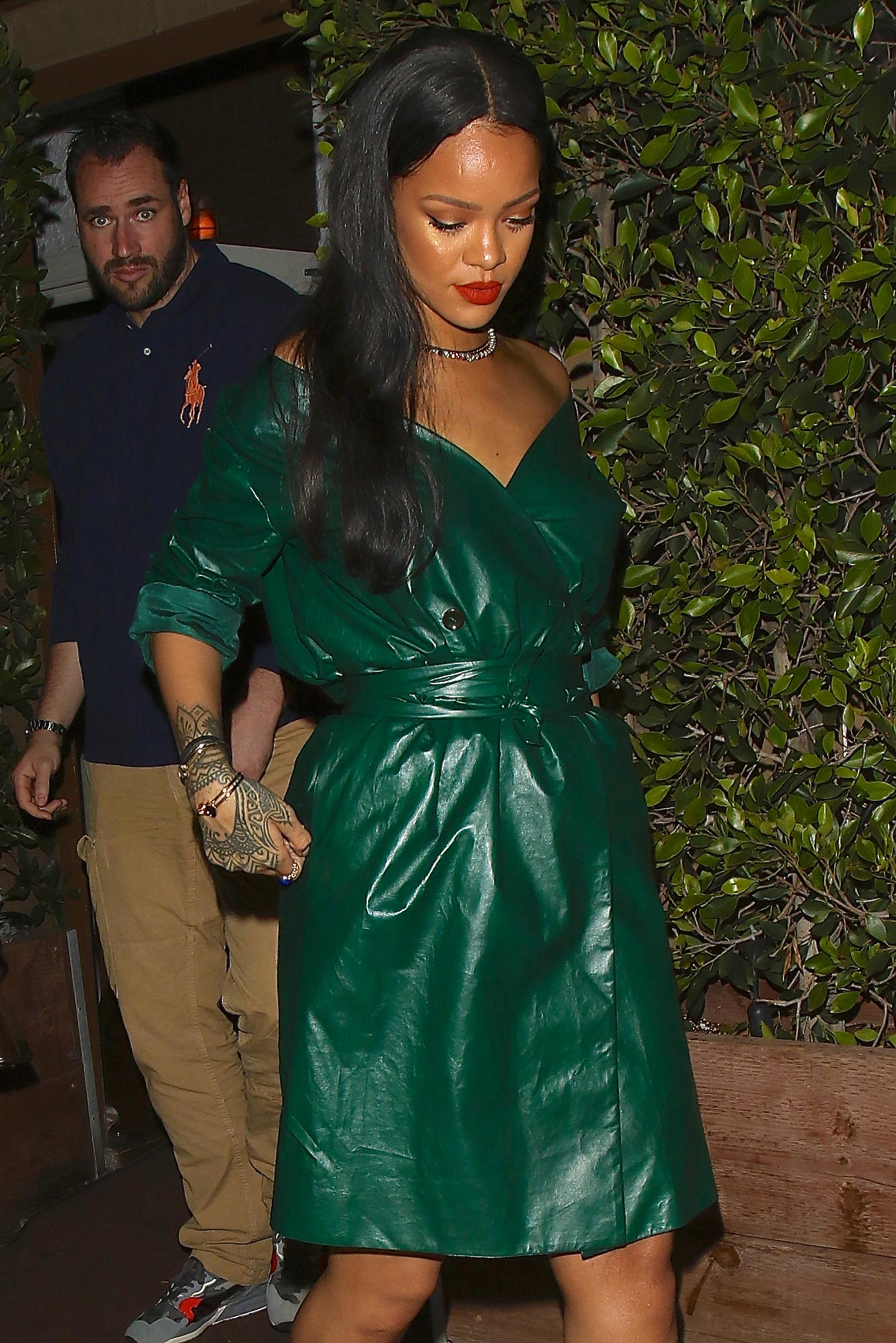 Rihanna is spotted leaving dinner at Giorgio Baldi