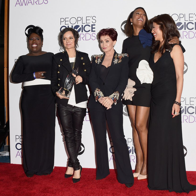 Sara Gilbert pose in the press room at the 2016 People’s Choice Awards