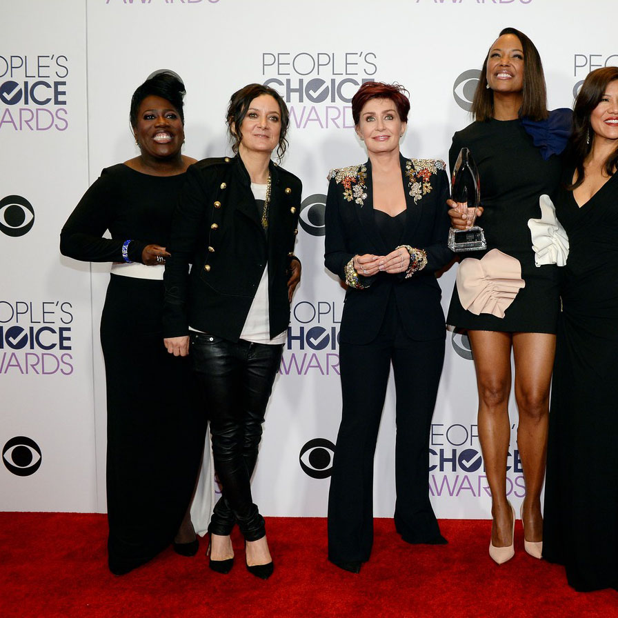 Sara Gilbert pose in the press room at the 2016 People’s Choice Awards