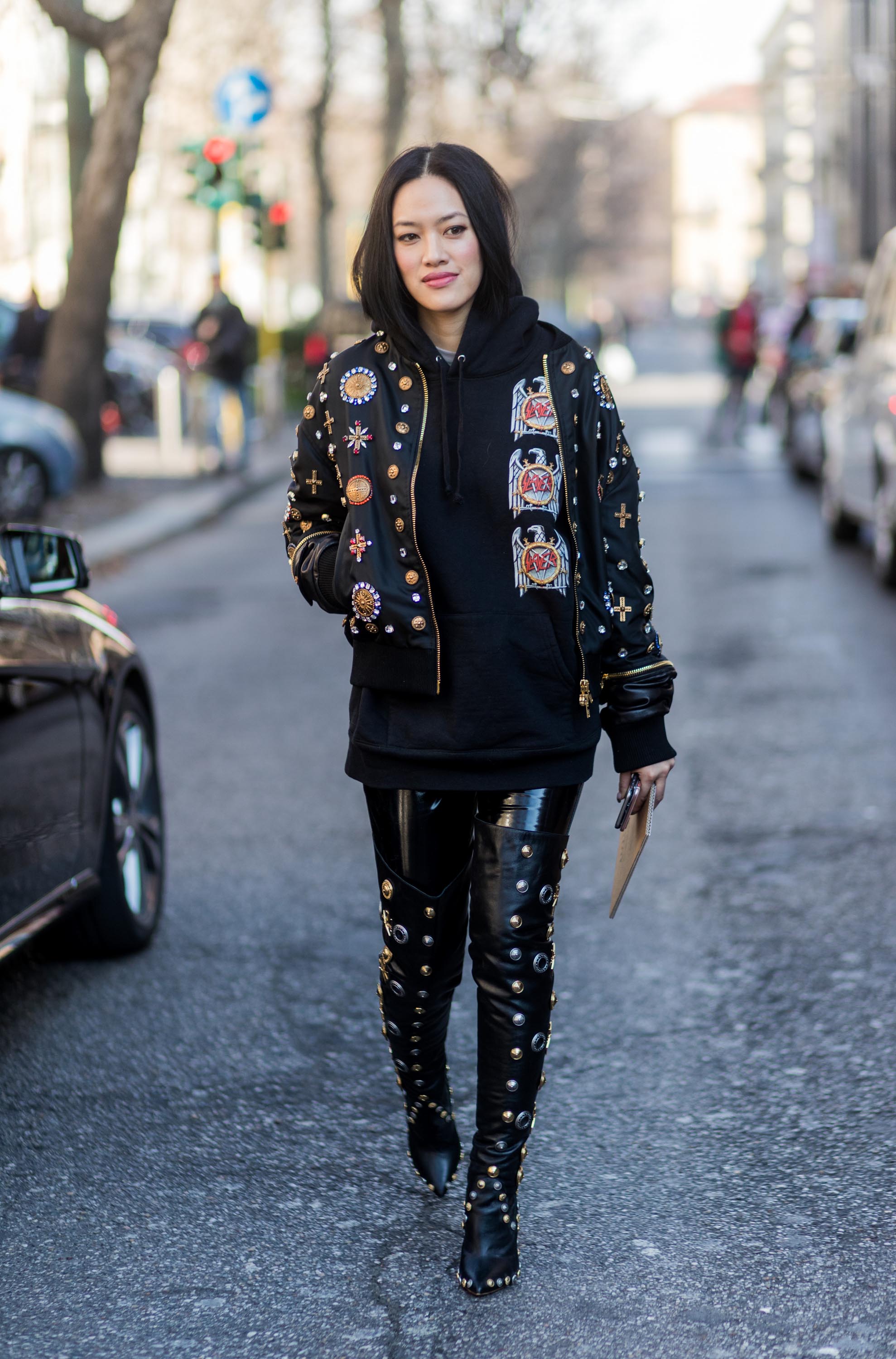 Street style during Milan Fashion Week Fall/Winter 2017/18
