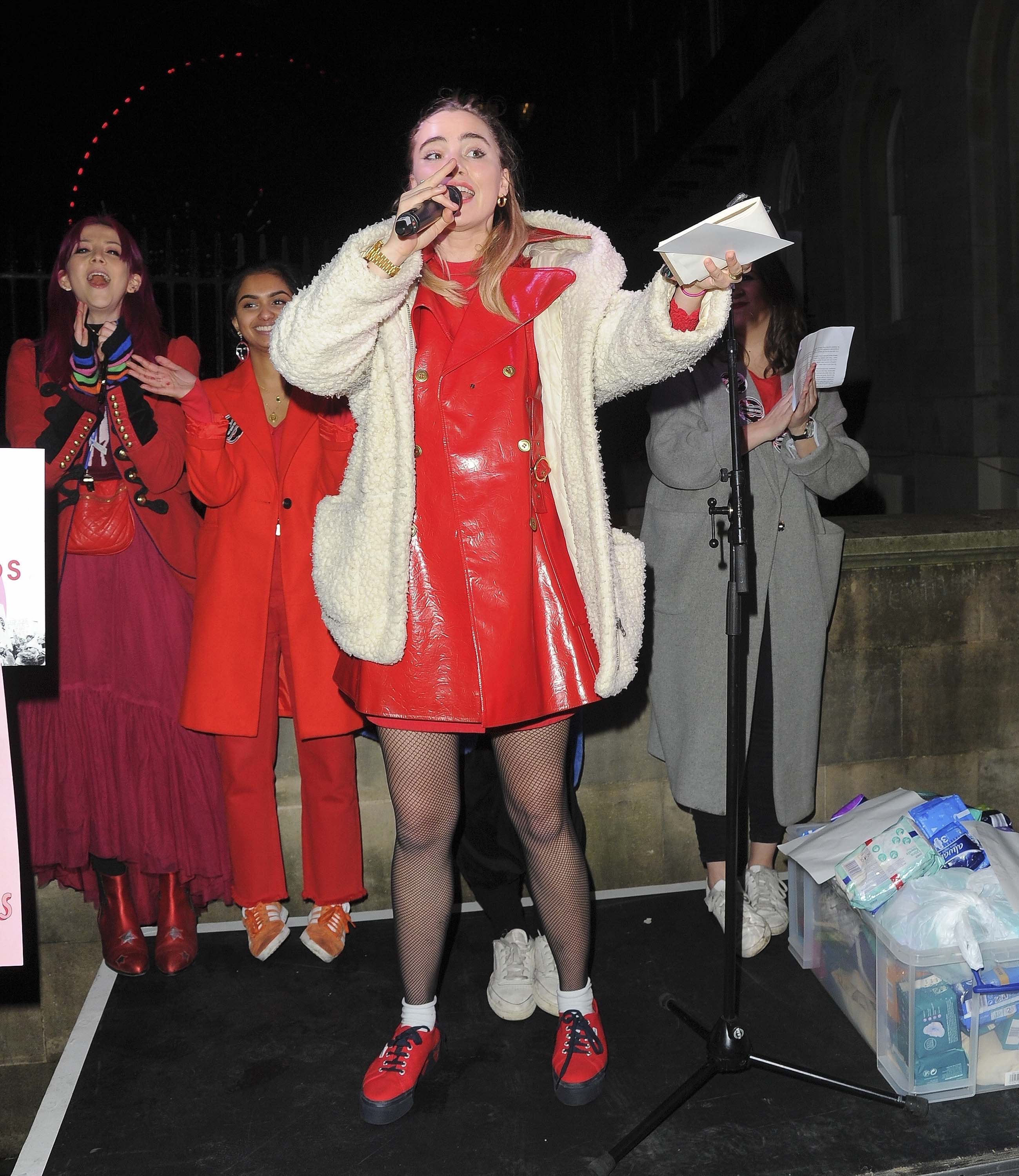 Suki Waterhouse attends #FreePeriods Protest