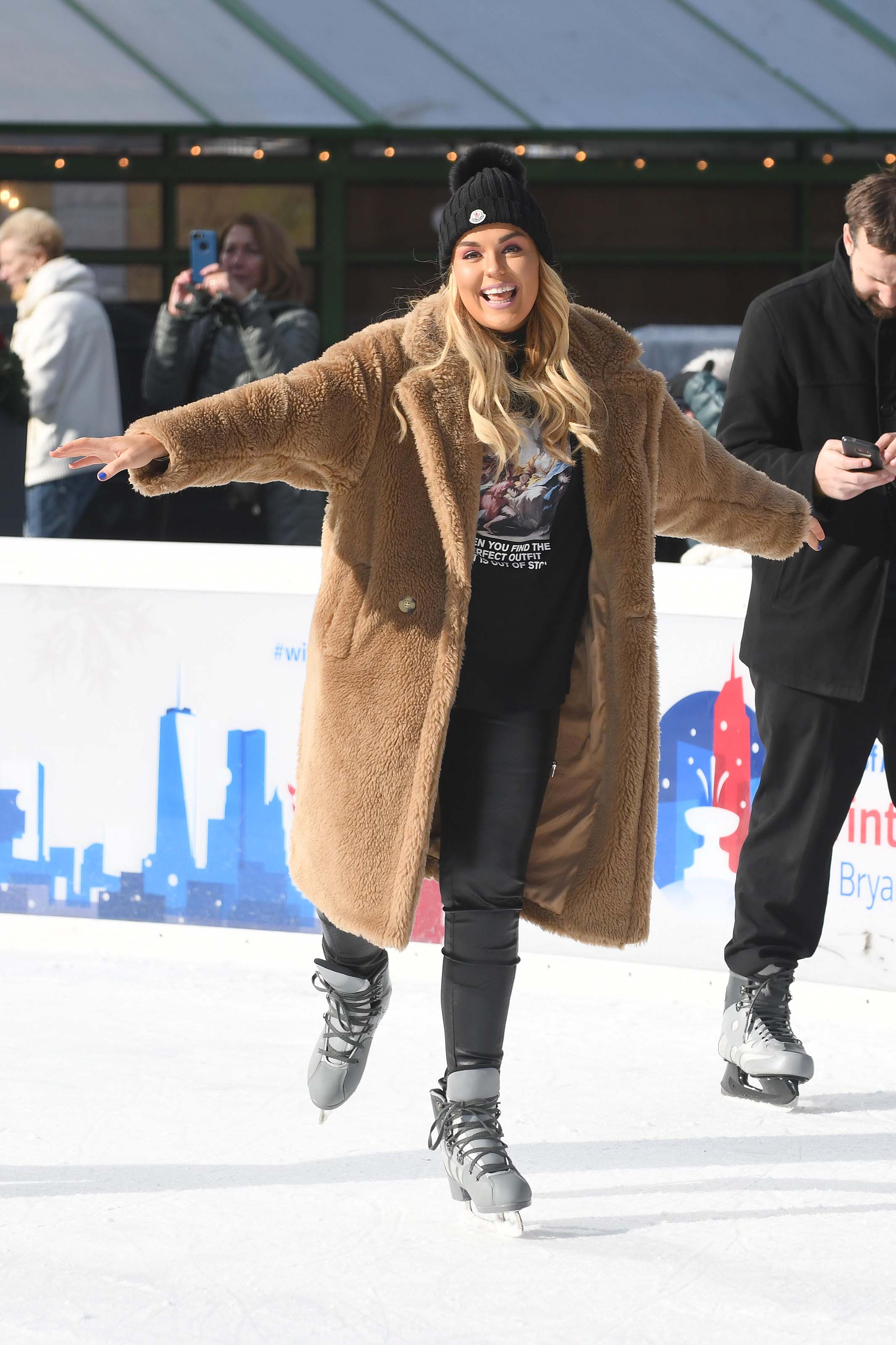 Tallia Storm ice skating in Bryant Park
