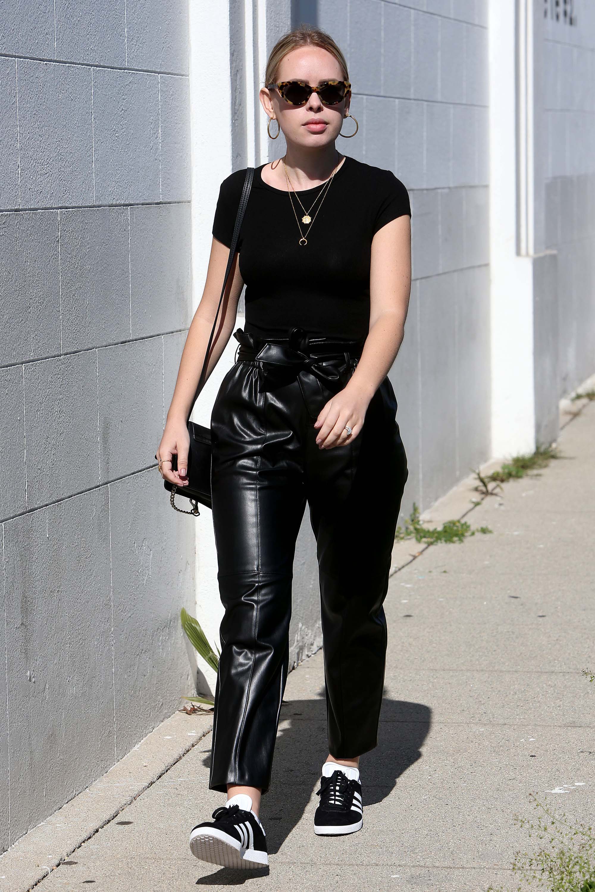Tanya Burr heads to a meeting
