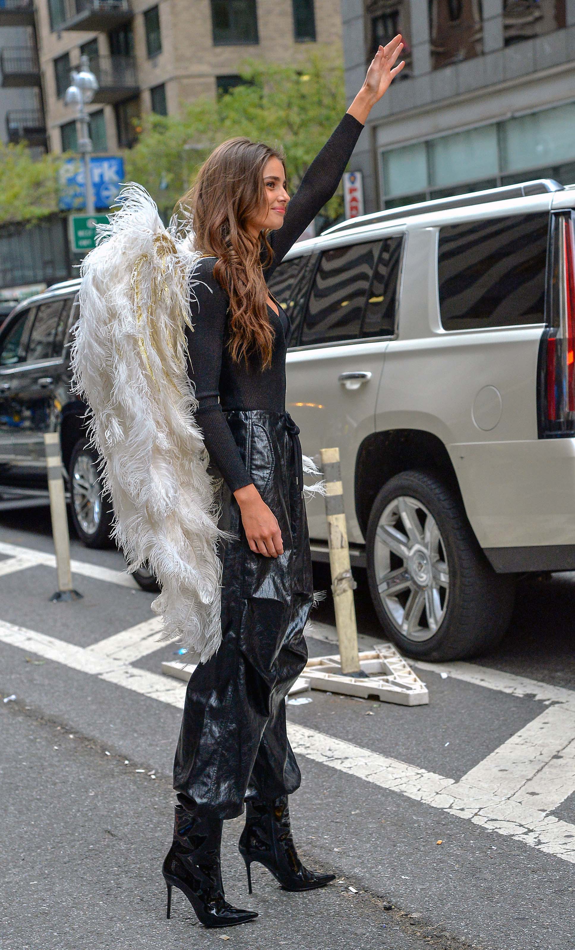 Taylor Hill films a small promo event in NYC showcasing her Angel Wings