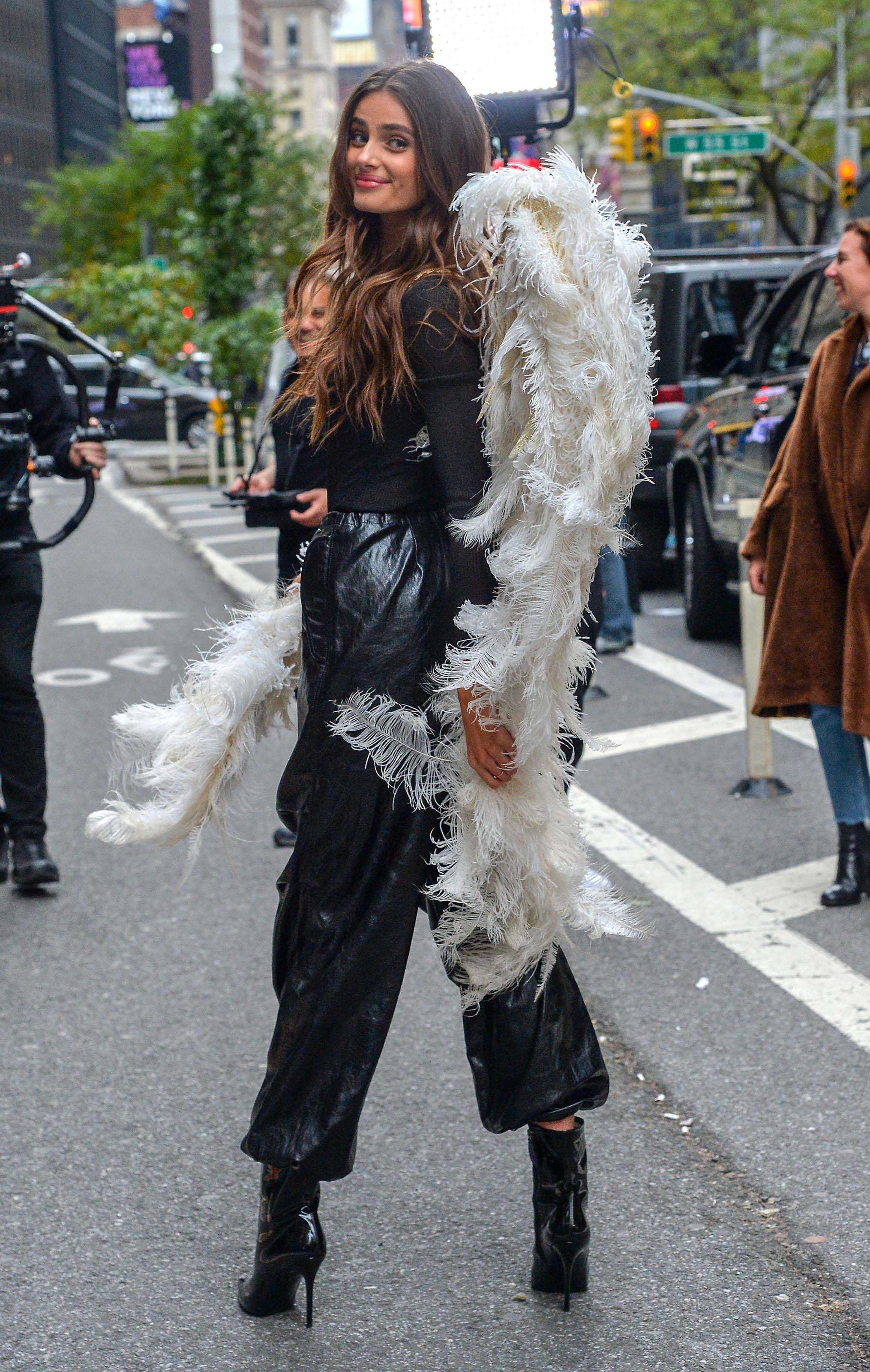 Taylor Hill films a small promo event in NYC showcasing her Angel Wings