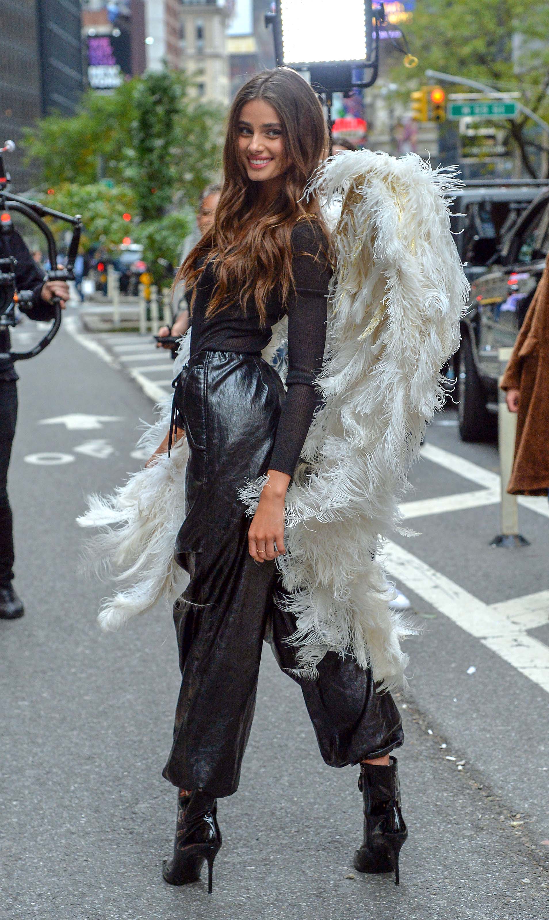 Taylor Hill films a small promo event in NYC showcasing her Angel Wings