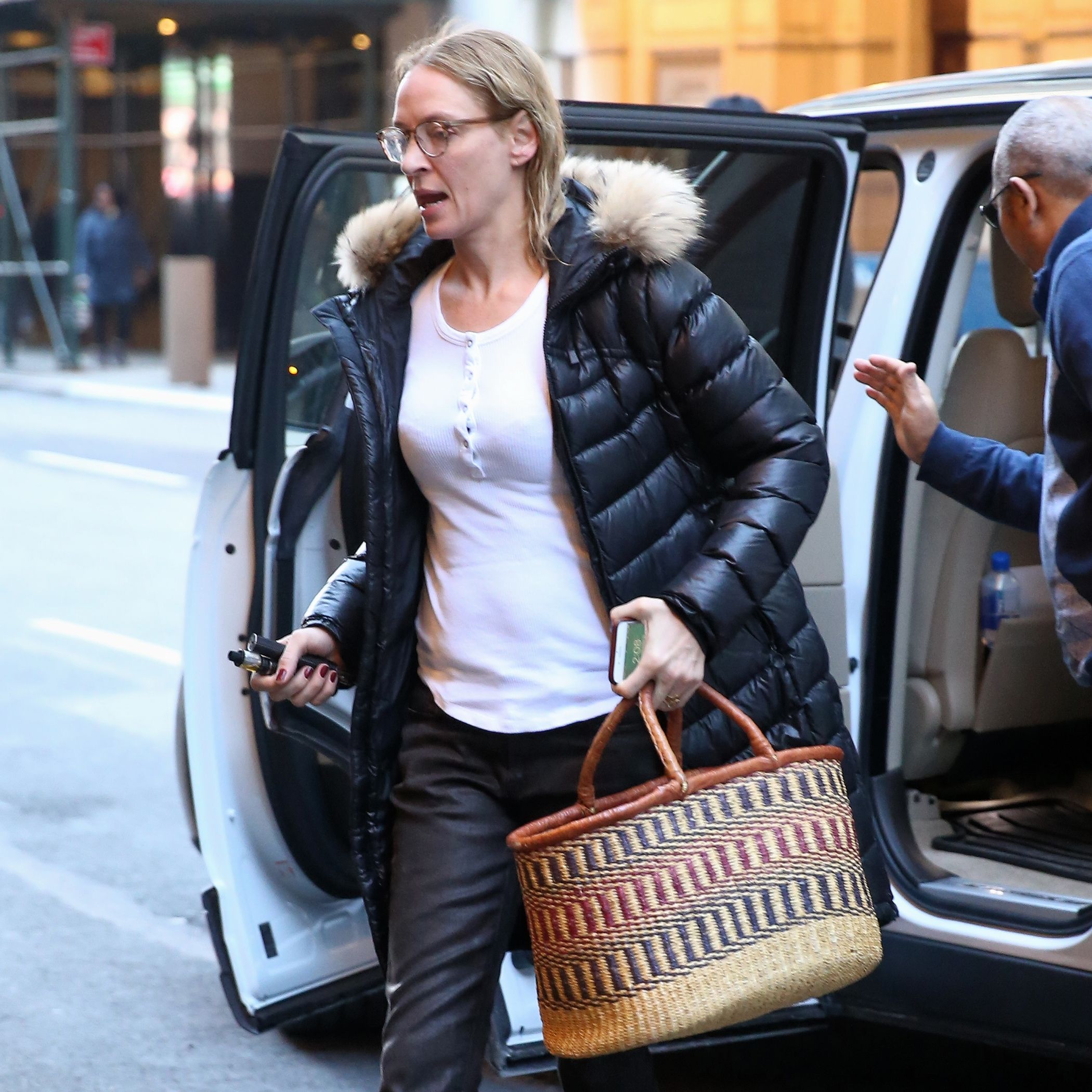Uma Thurman arrives at the Hudson Theatre for her matinee performance